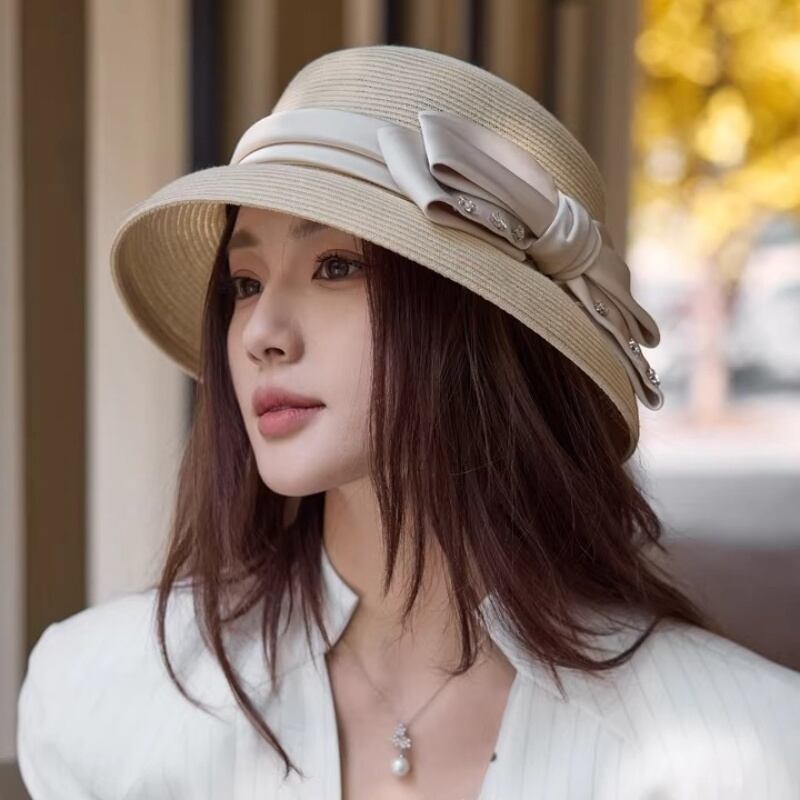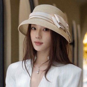 Crystal ribbon straw sun hat B2681