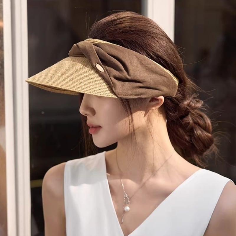 全3色/Twist ribbon straw sunvisor B2683