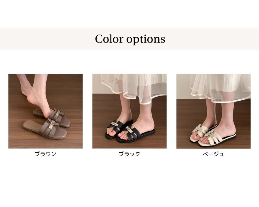 【35-40】Metal buckle flat sandals B2793
