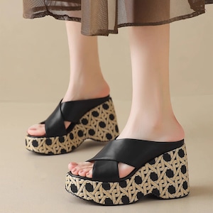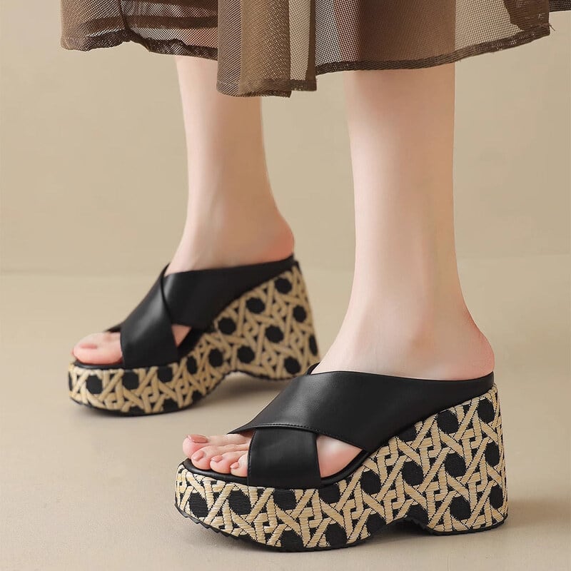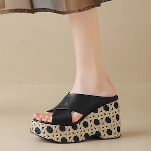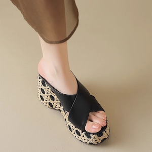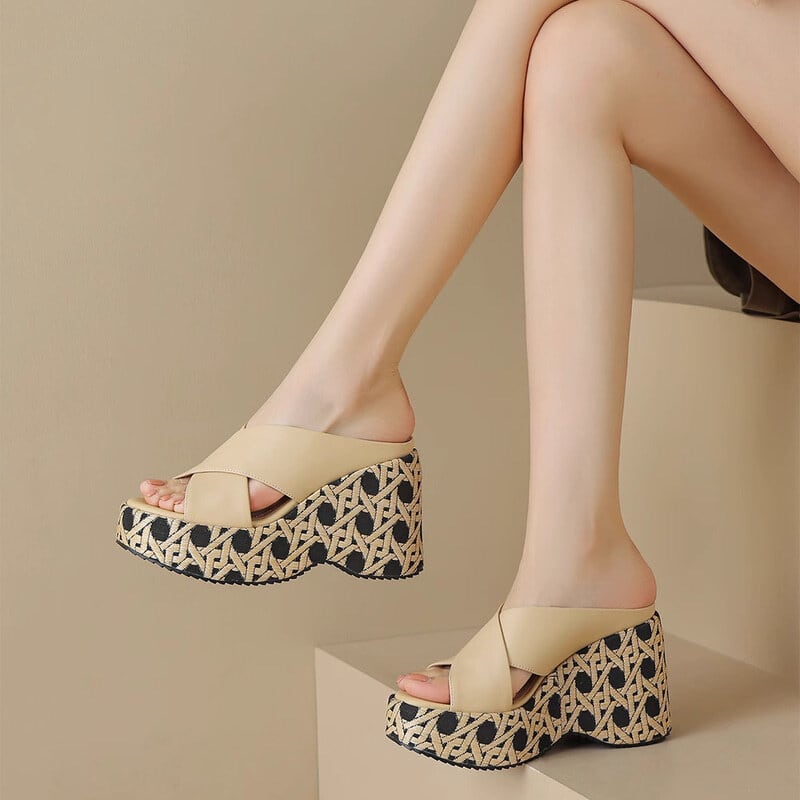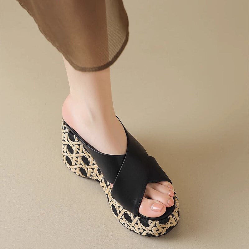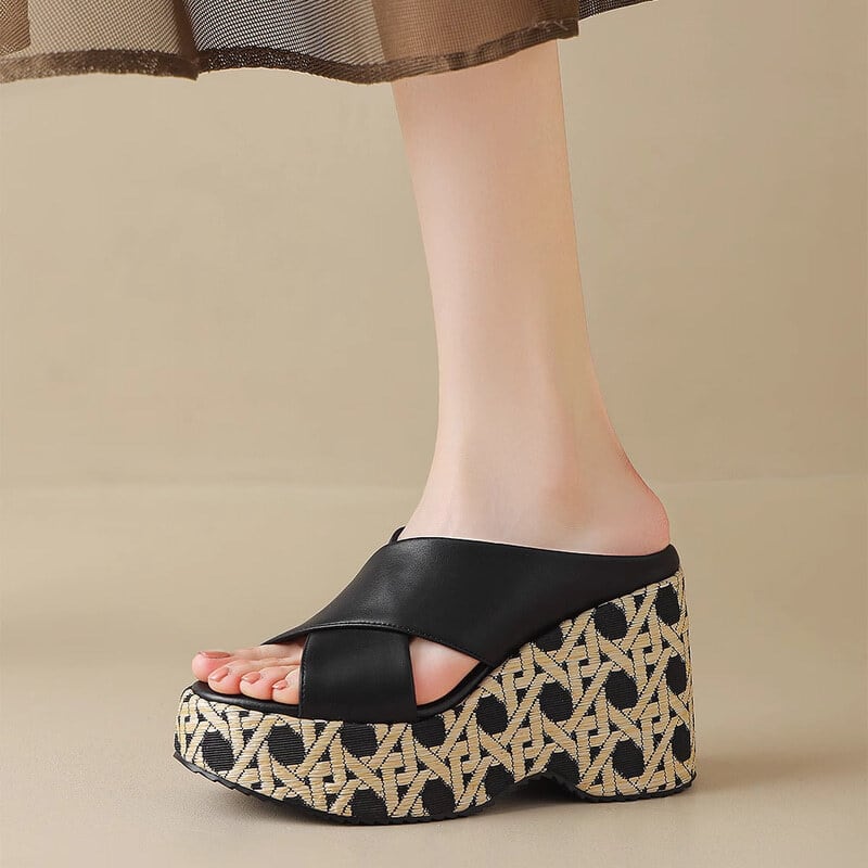 Wedge sole cross belt sandals B2844
