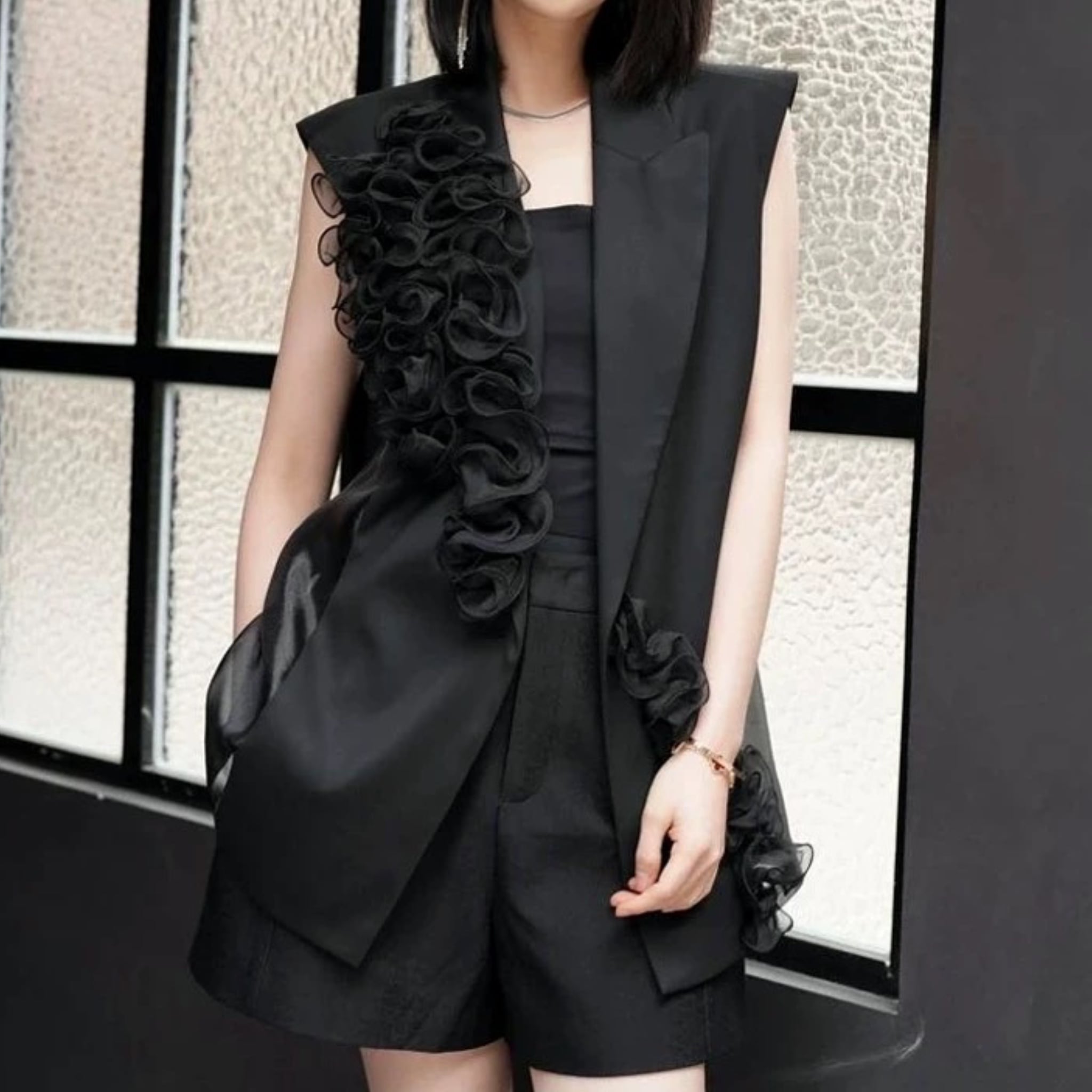 Ruffle sheer gilet B2848