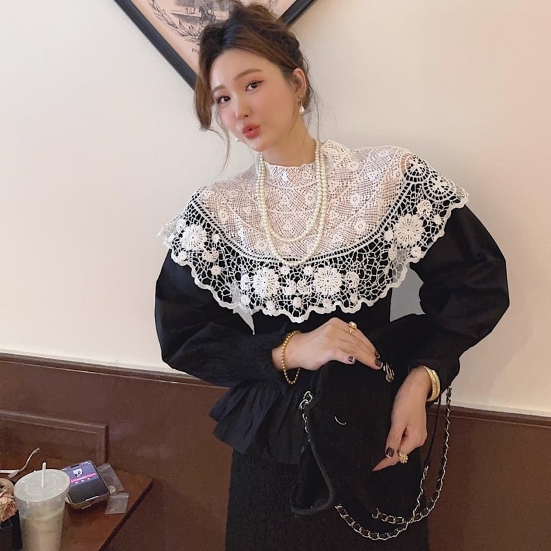 Lace cape peplum blouse B3046