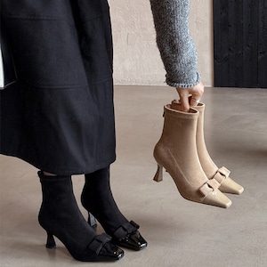 【34-40】Ribbon skinny short boots M4247