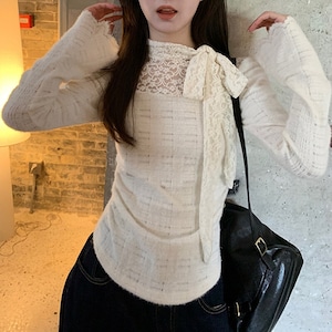 Lace decollete high neck T-shirt B3088