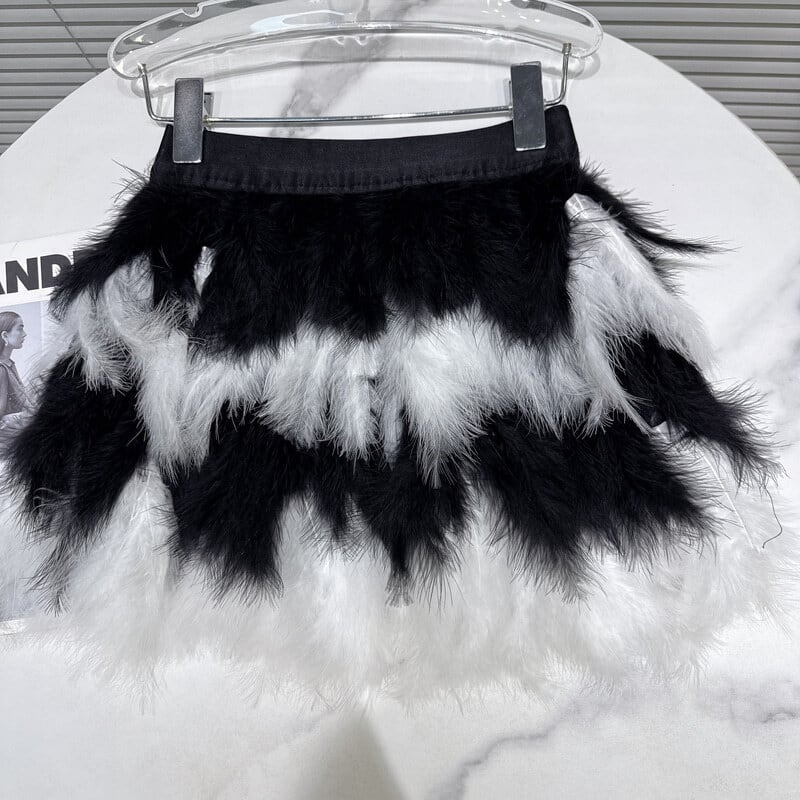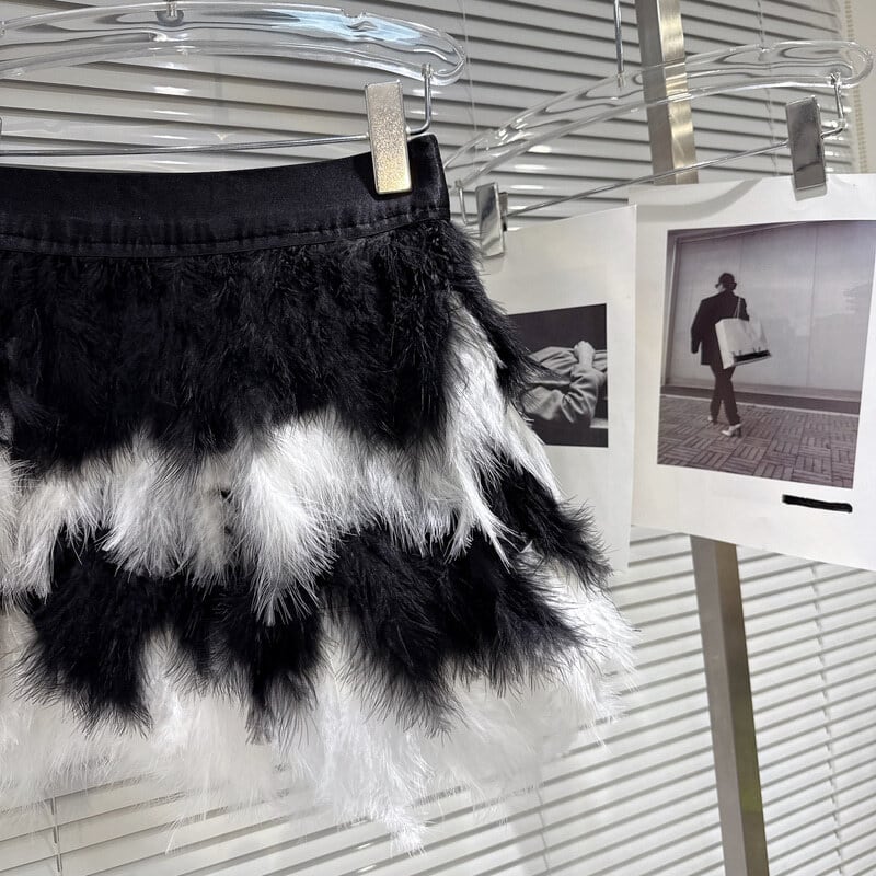 Monotone feather mini skirt B3110