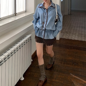 Stitch trim stripe blouse B3141