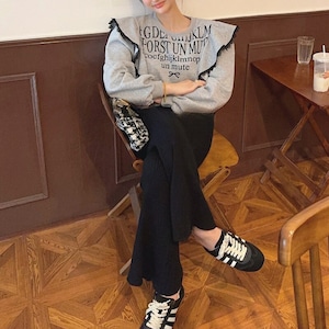 Ruffle shoulder lettering sweat B3201