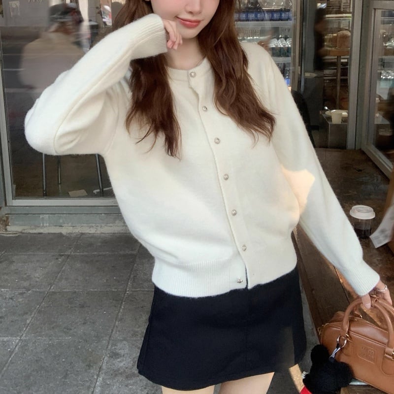 全5色/Crew neck cardigan B3493