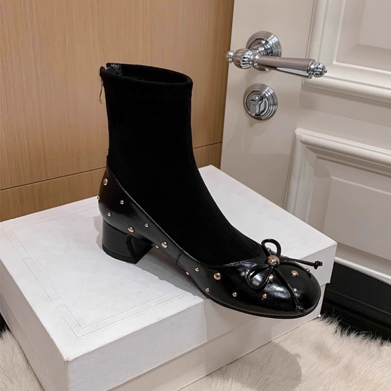 【34–40】Stud ribbon ballet boots (short / long) B3502
