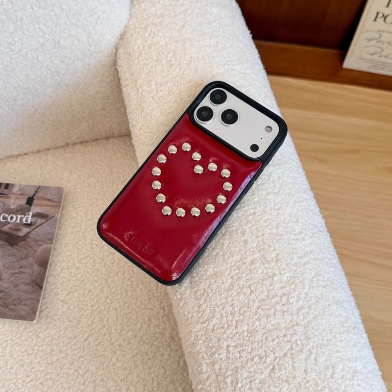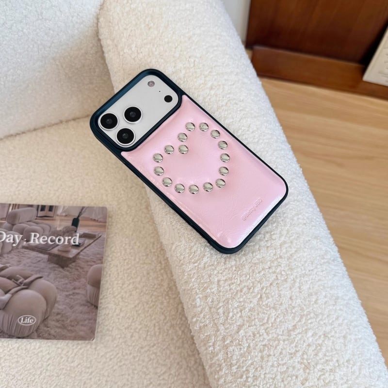 全5色/Stud heart leather iphone case B3518