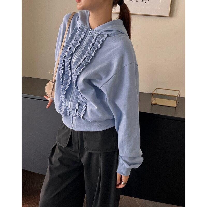 全3色/Frill design zip hoodie B3340