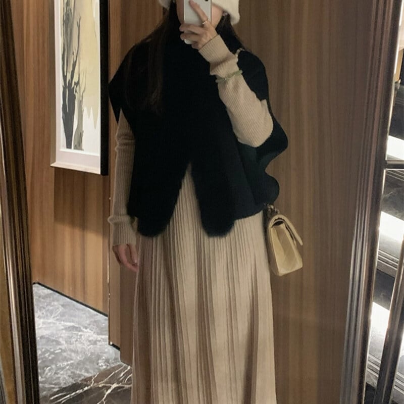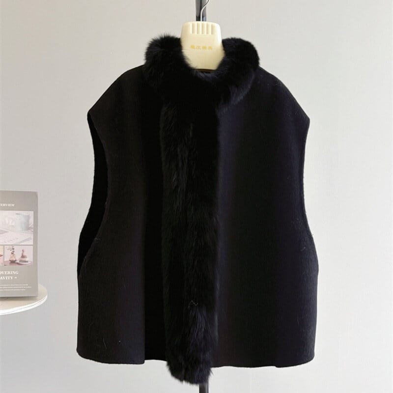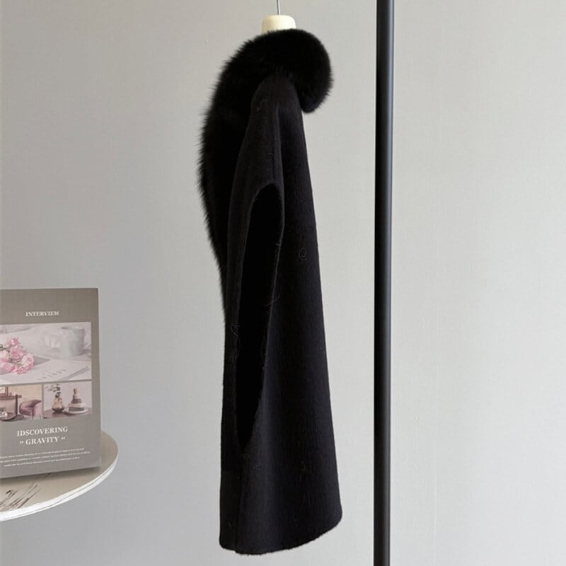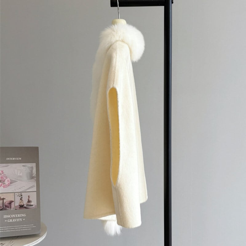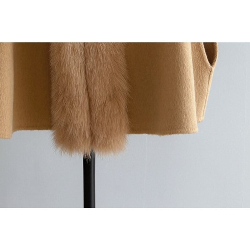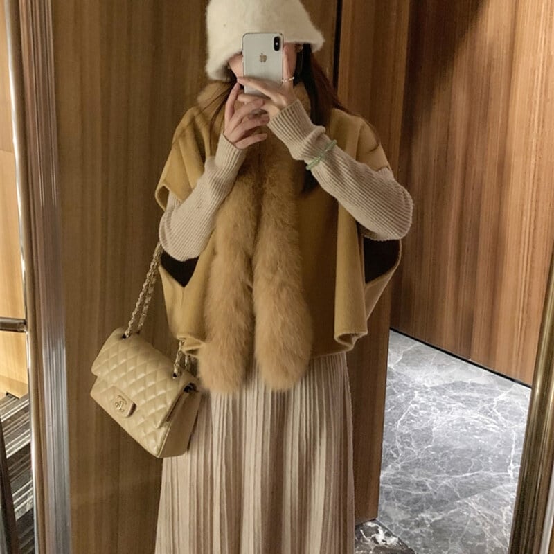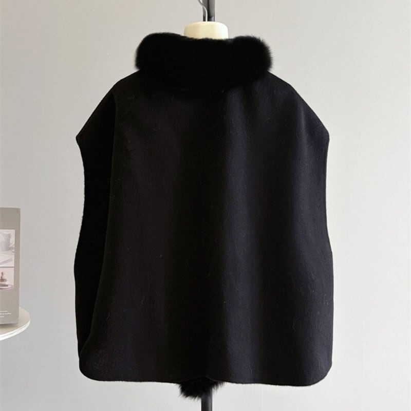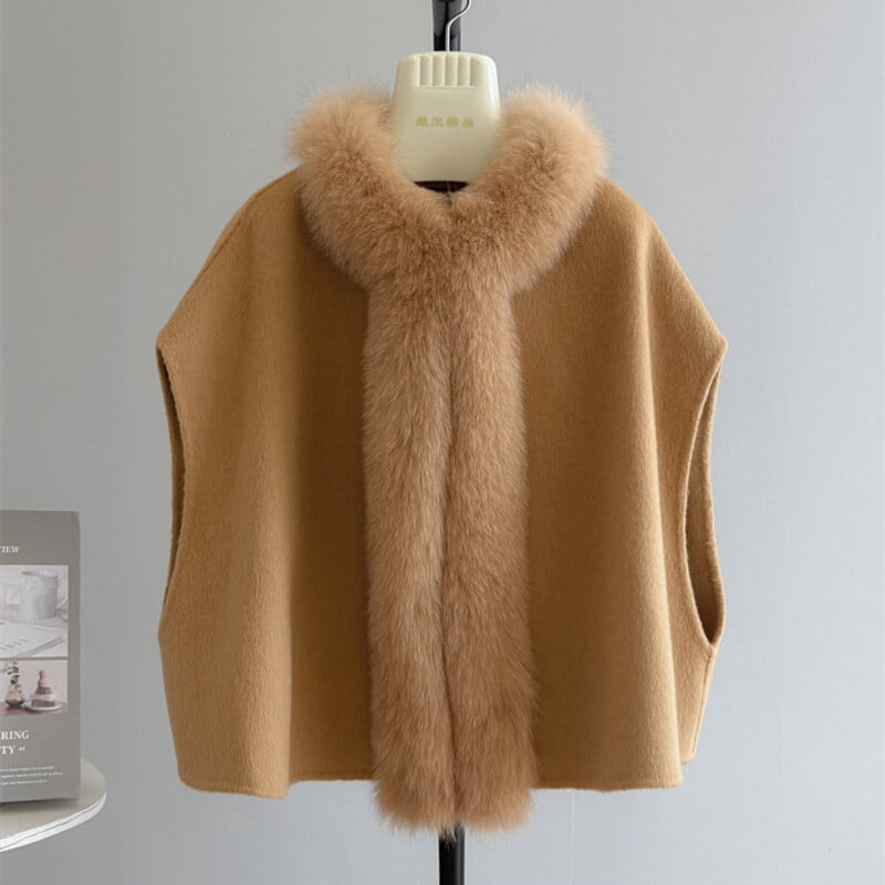 Fox fur wool poncho B3369