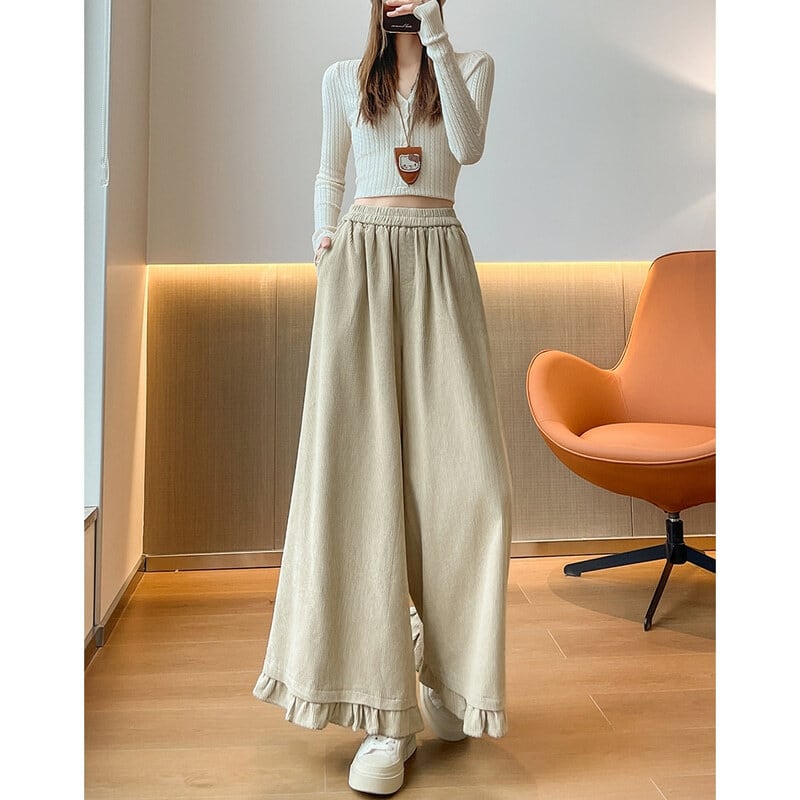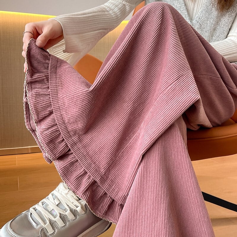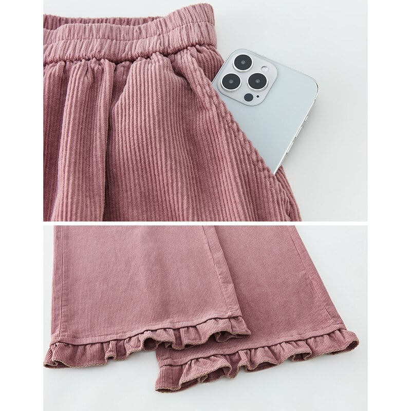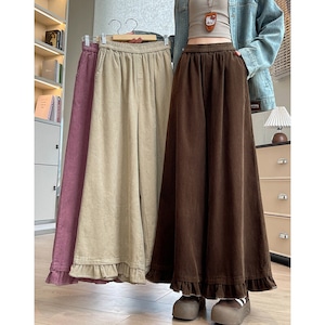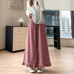 Corduroy frill hem wide pants B3429