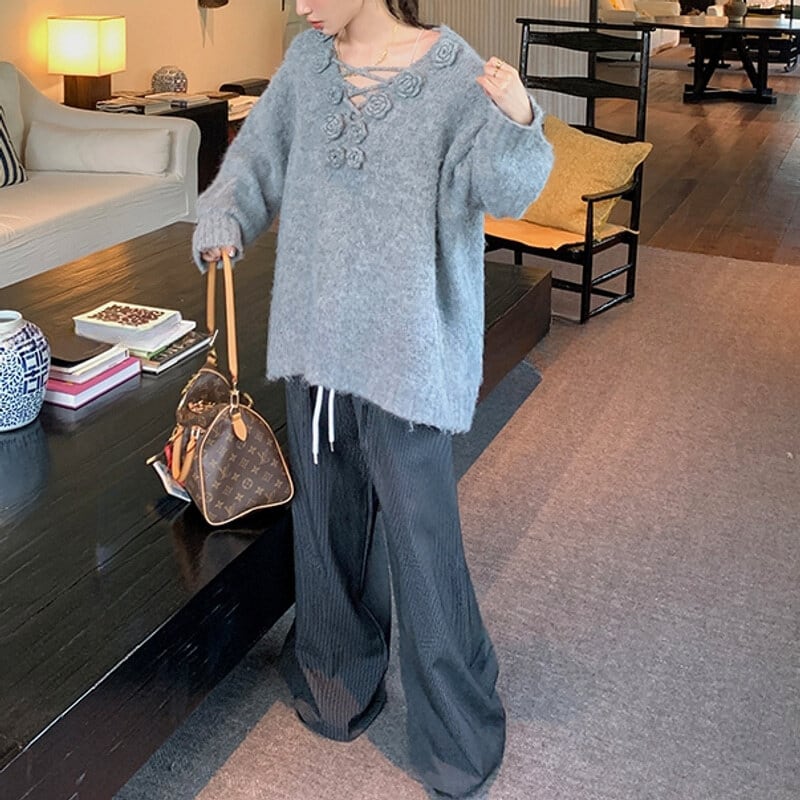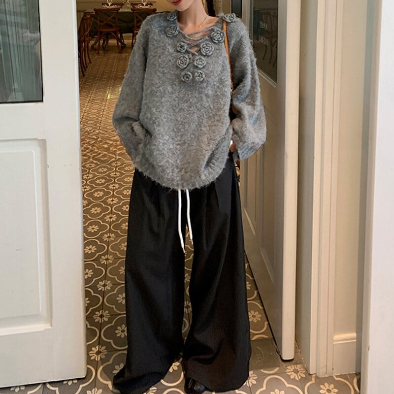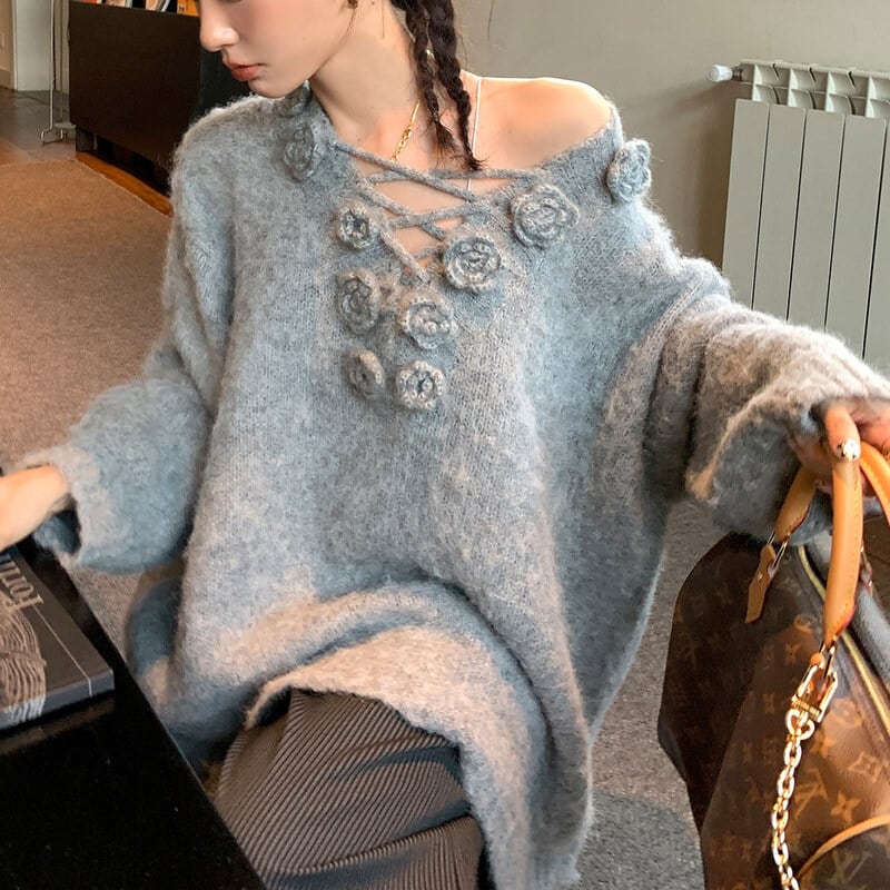 Flower lace up over knit B3381
