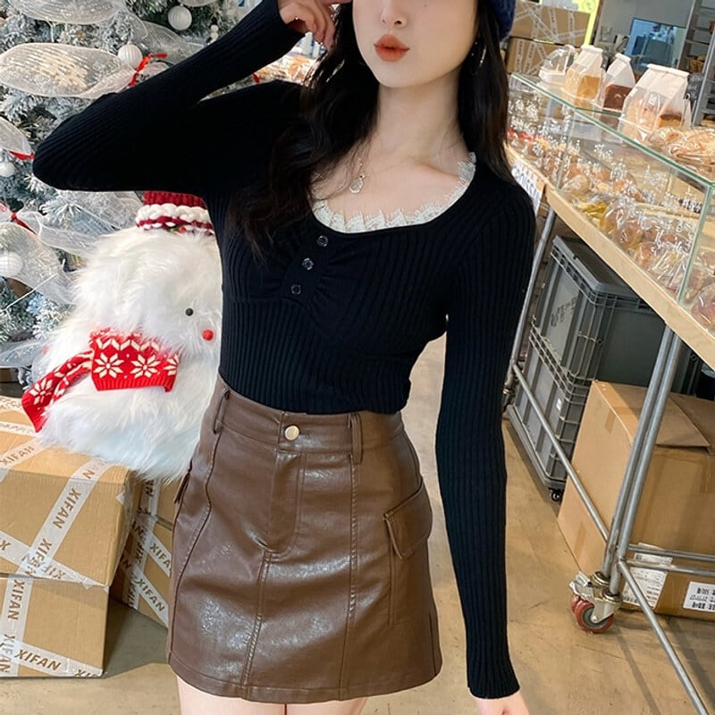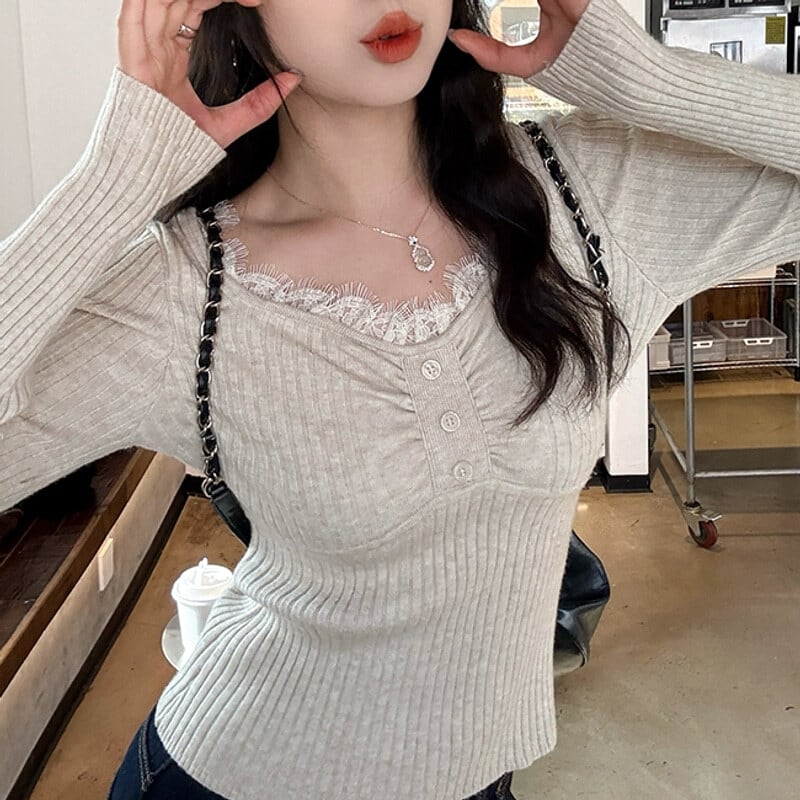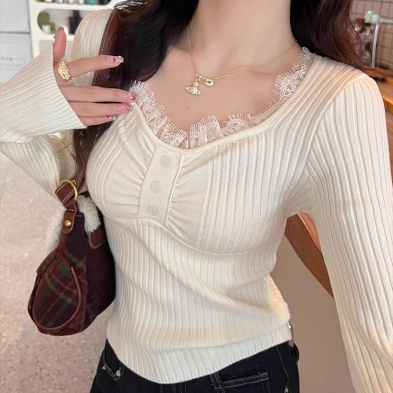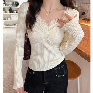 Lace v-neck rib knit B3438