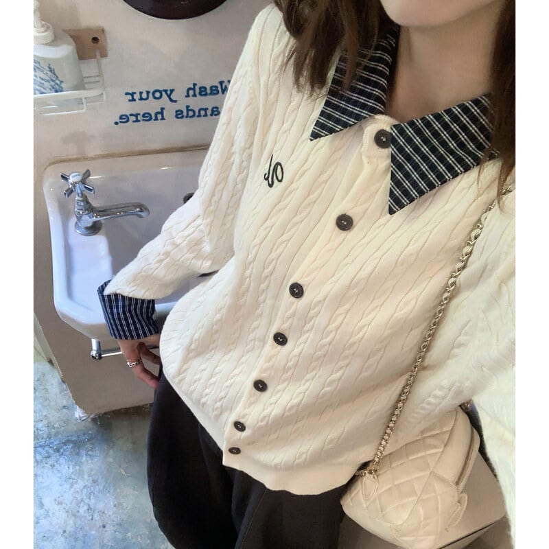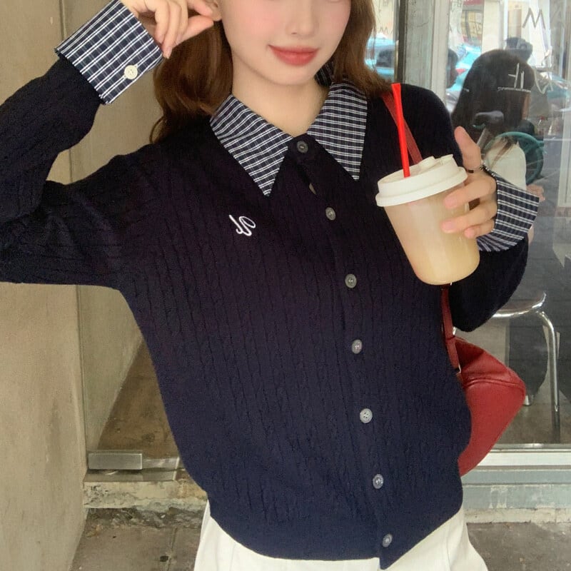 Polo collar layered cardigan B3440