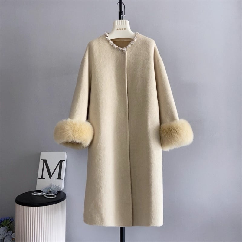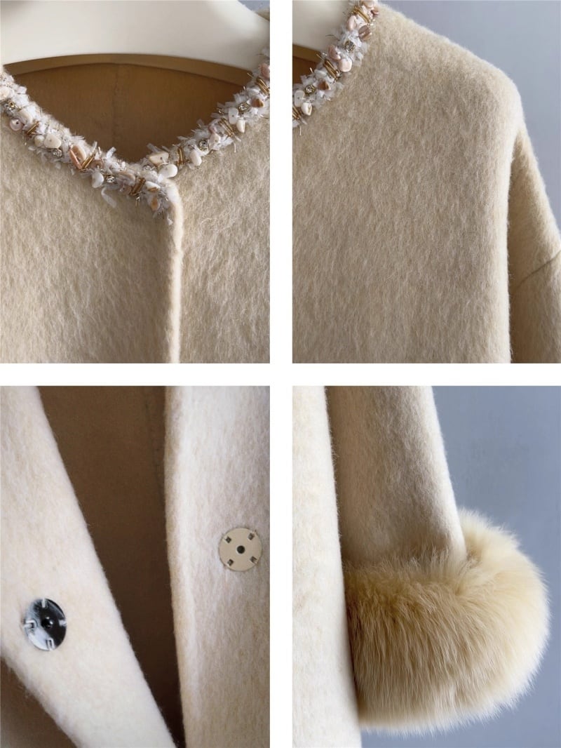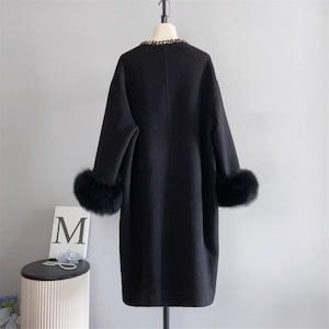 全3色/Fringe neck fur cuffs coat B3603