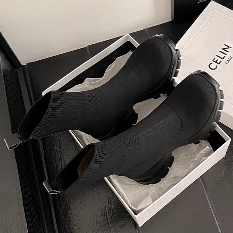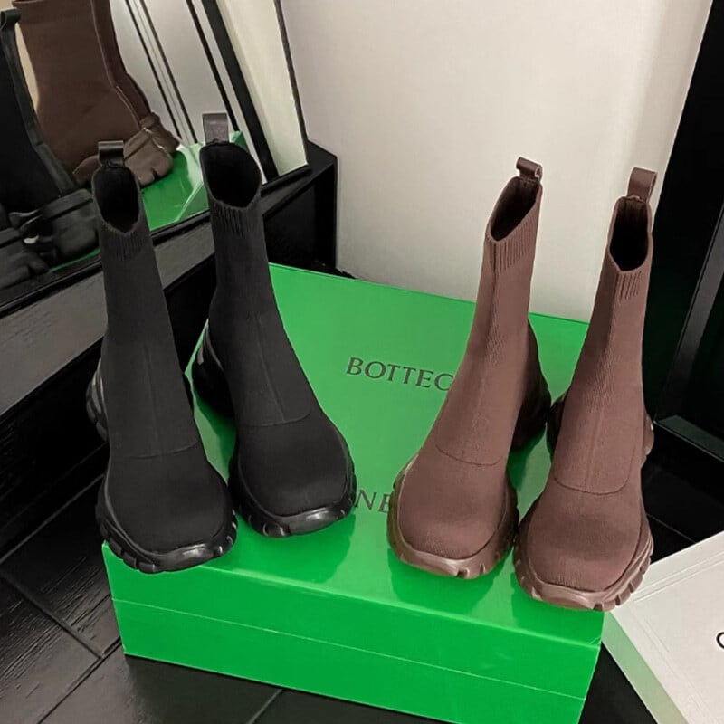 Block sole knit socks boots B3348