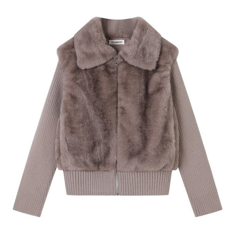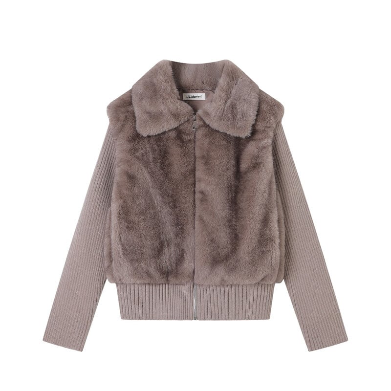 Fur knit combi jacket B3578