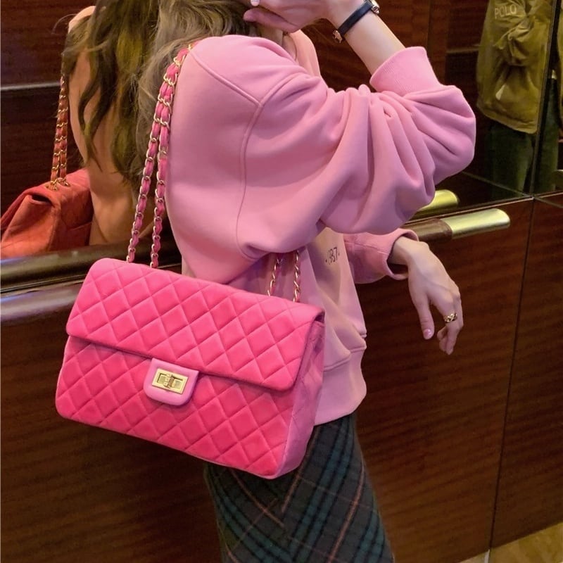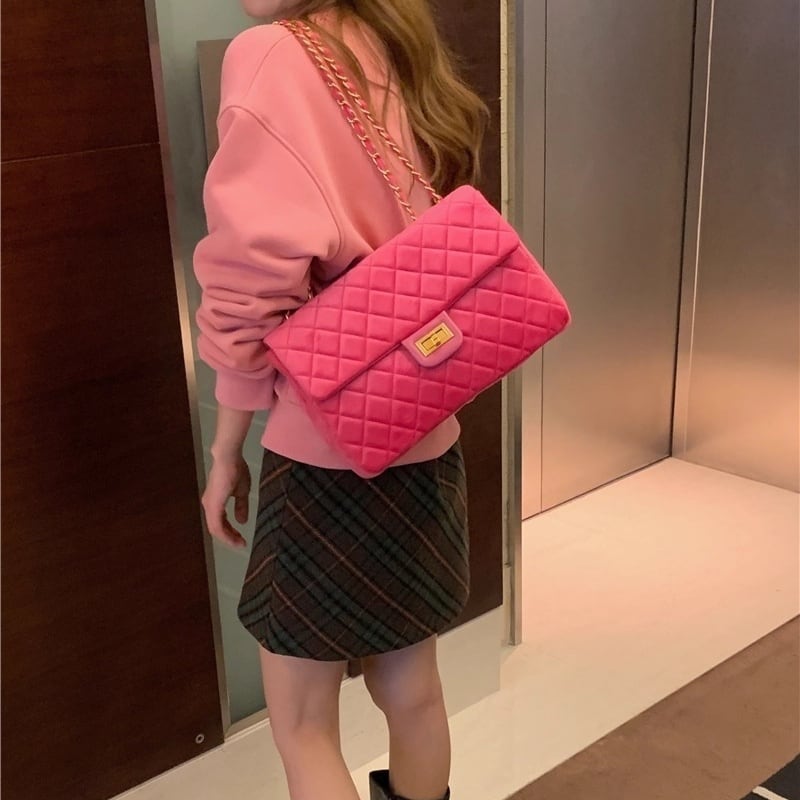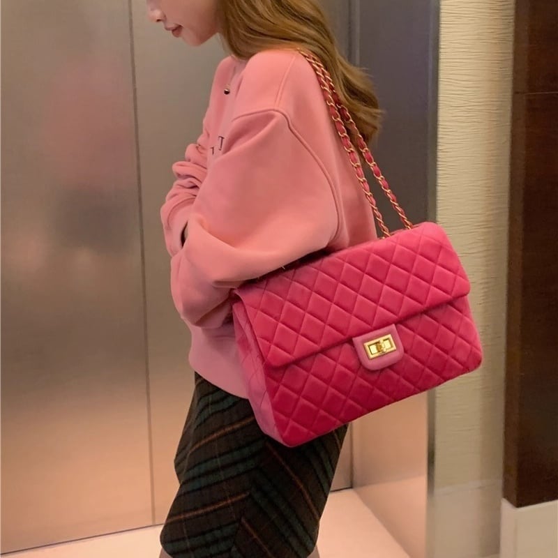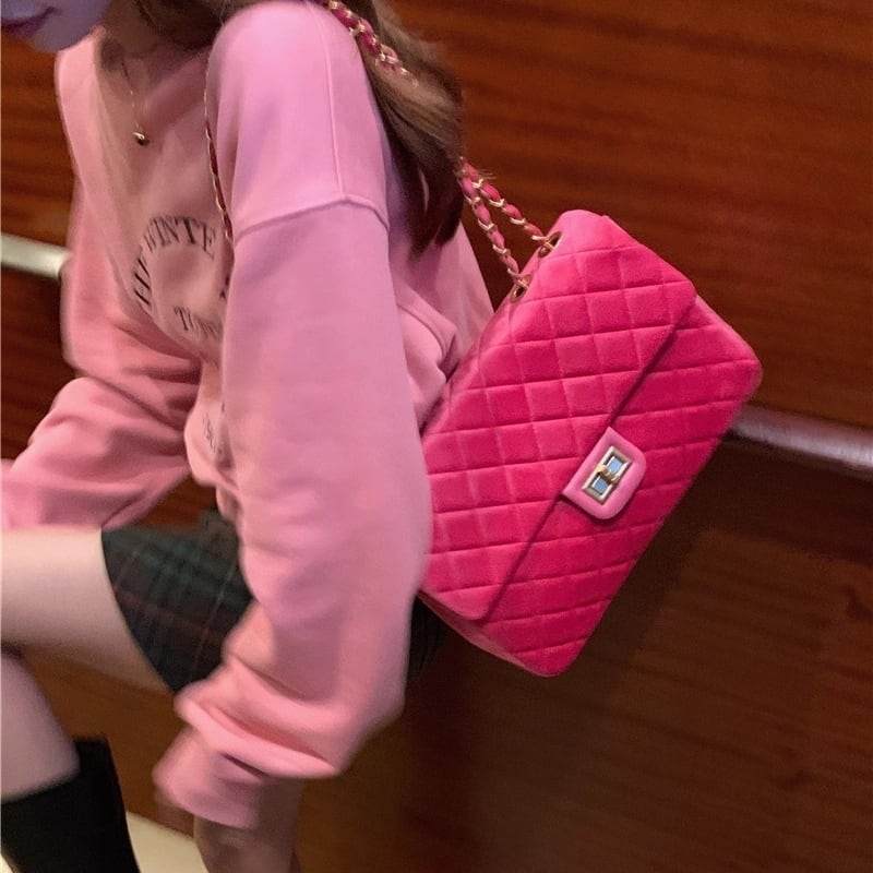 Velvet quilted chain shoulder bag B3652