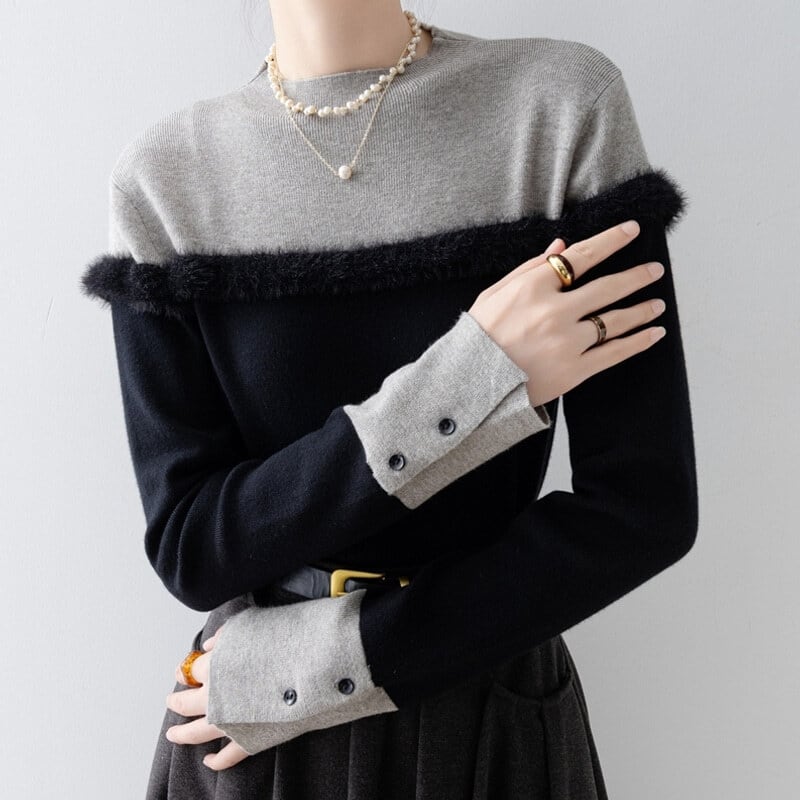 Fur accent bicolor knit B3637