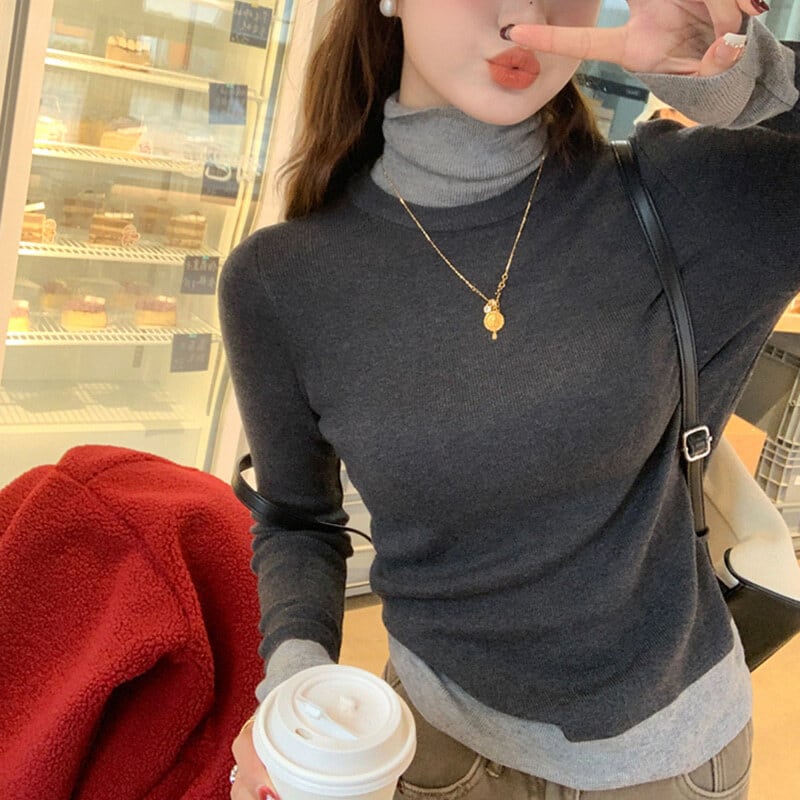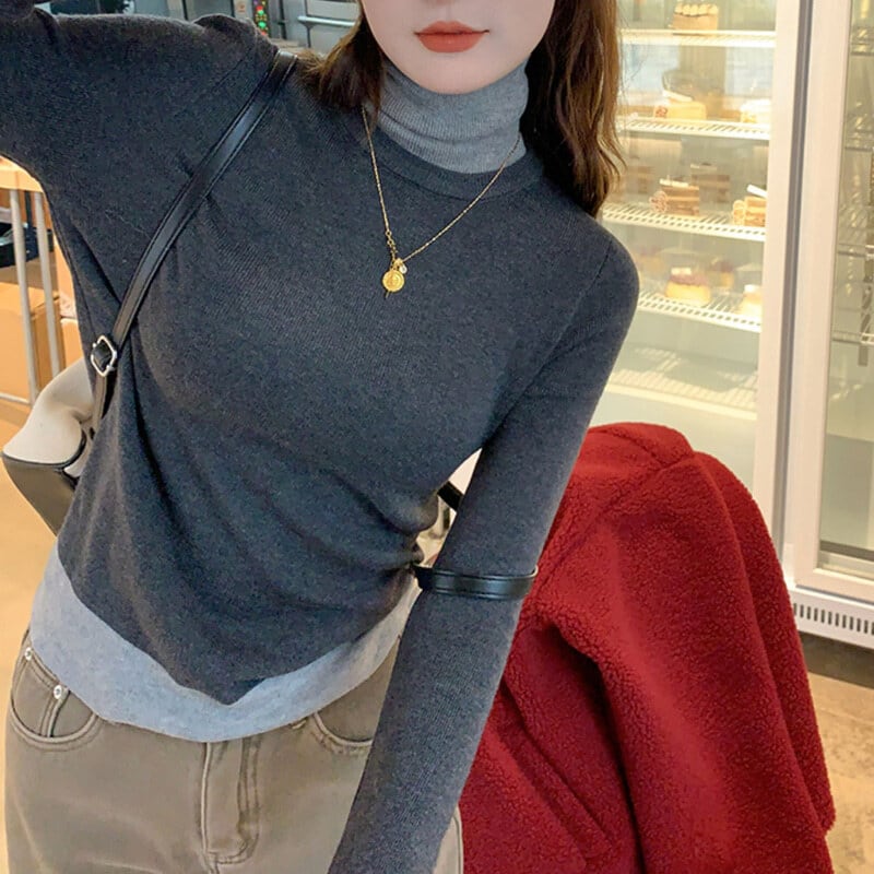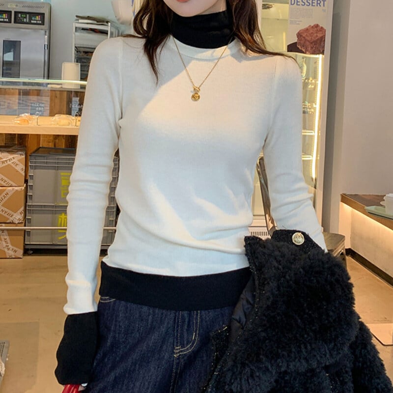 全3色/Bicolor layered knit B3698