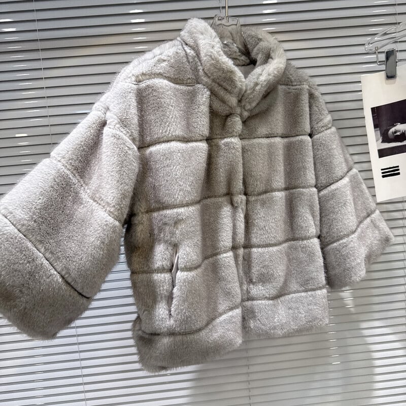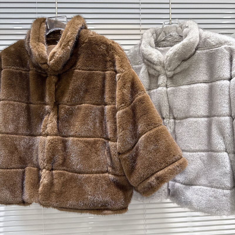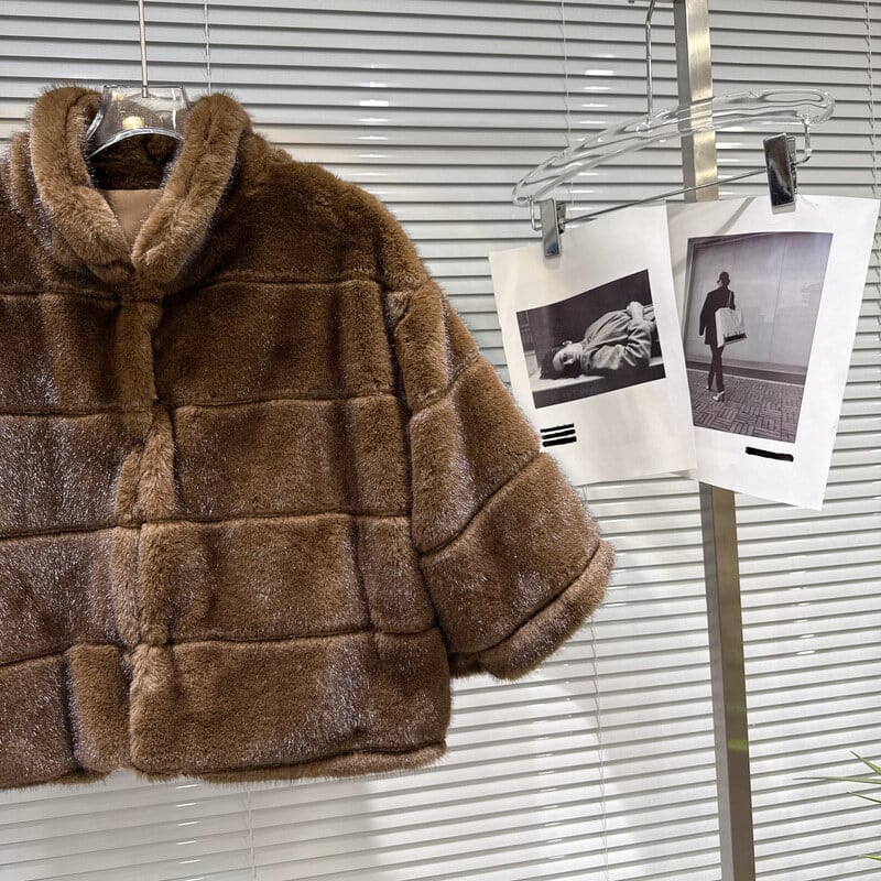Fur stand collar short coat B3765