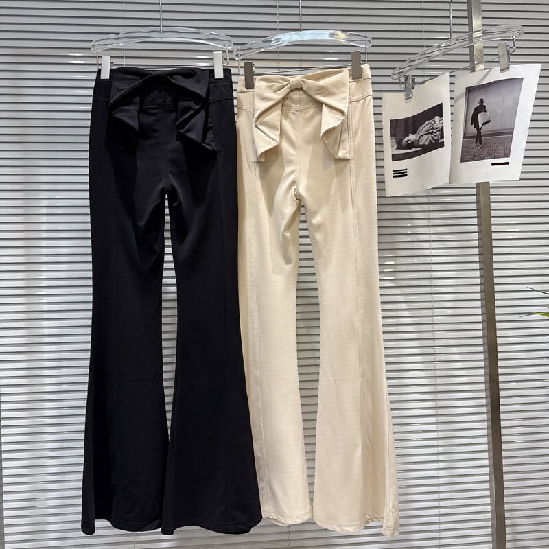 Back waist ribbon flare pants B3772