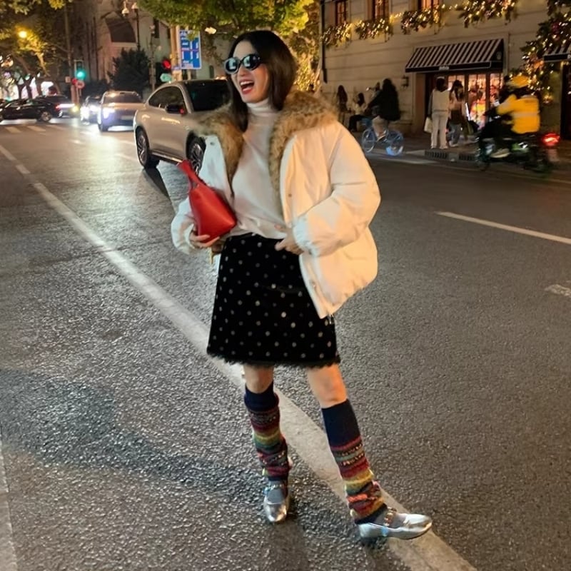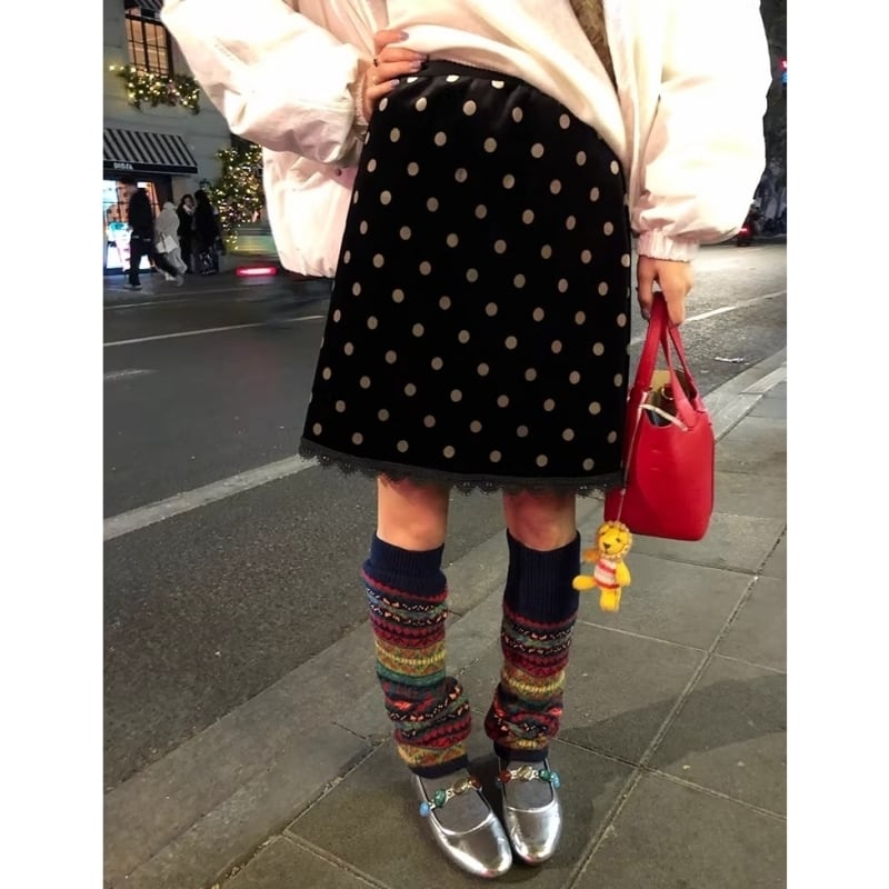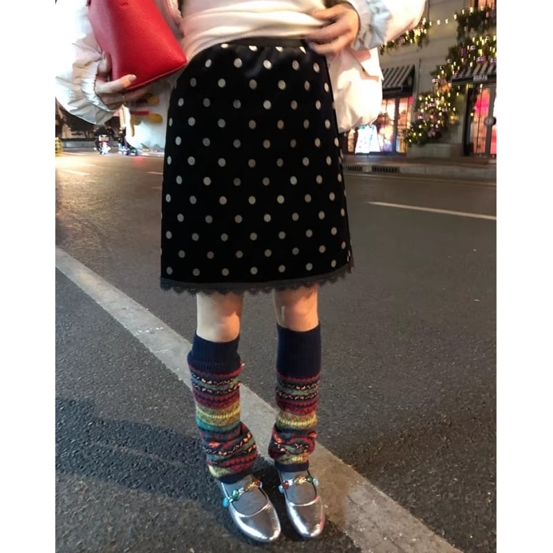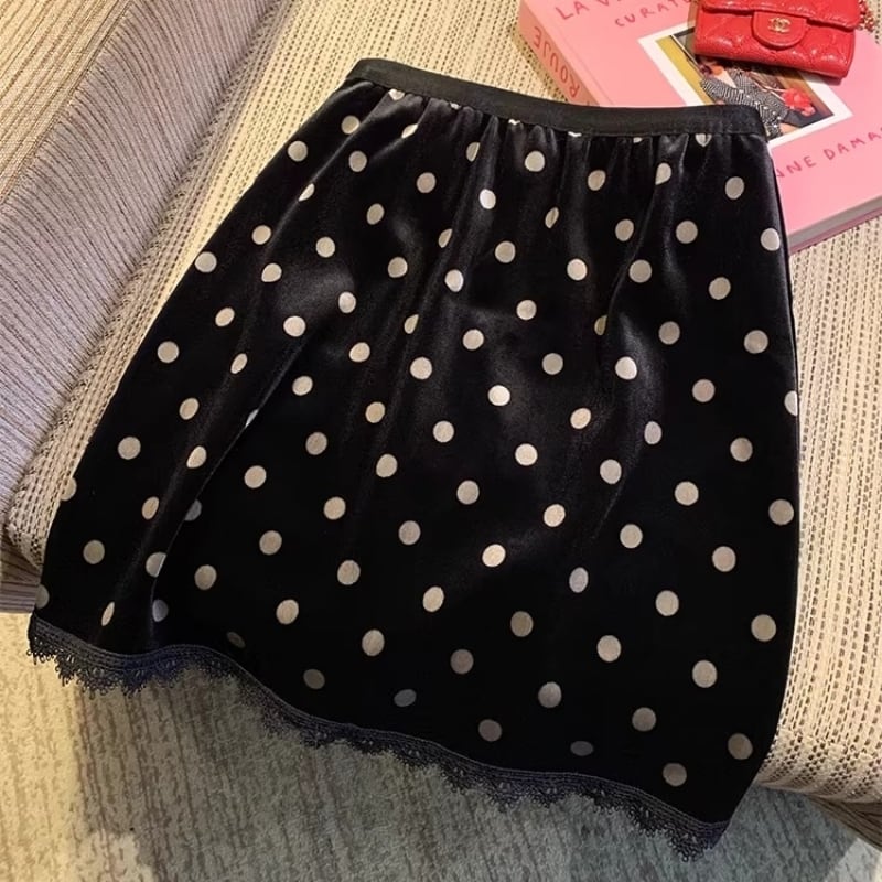 Polka dot velvet midi skirt M3144