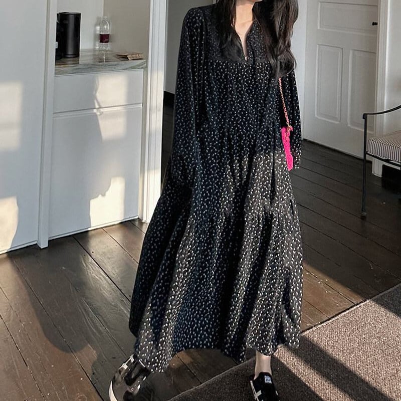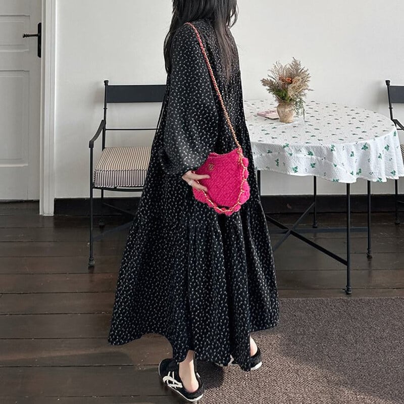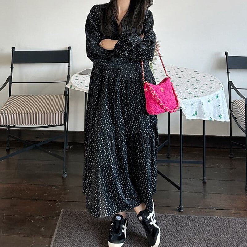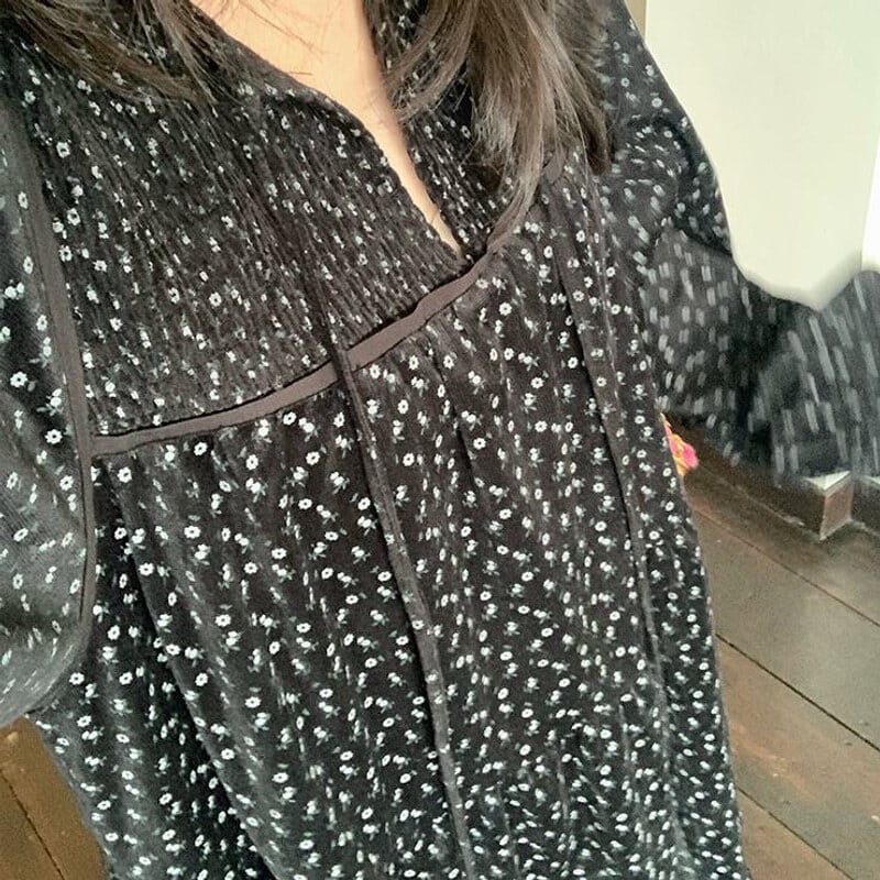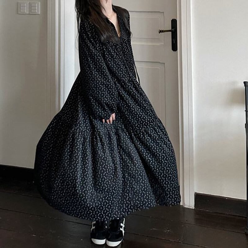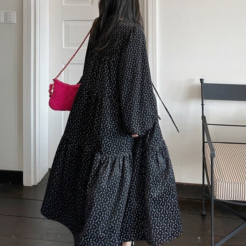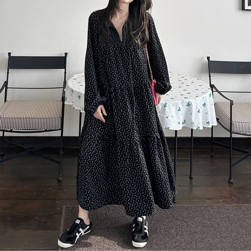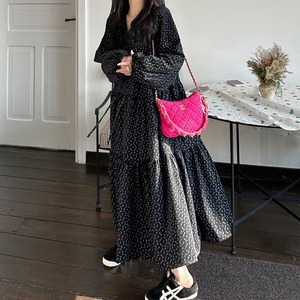 Corduroy floral long dress B3857
