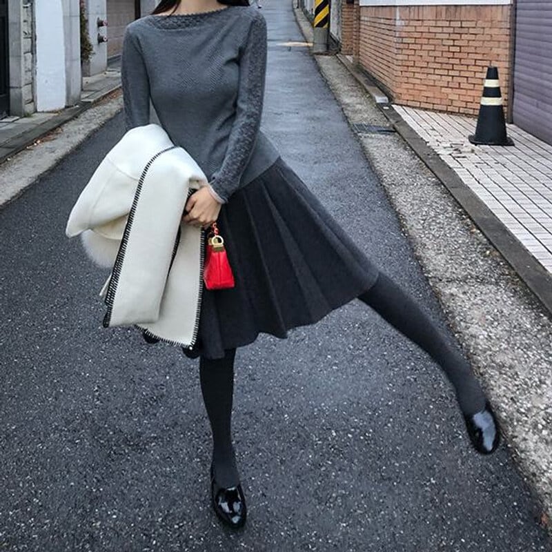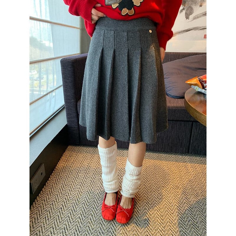 Pleats knit midi skirt B3864