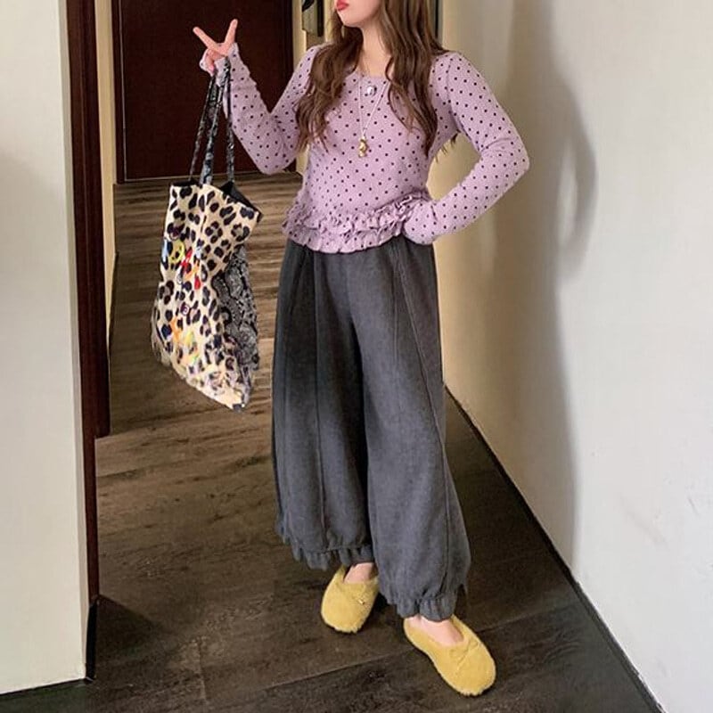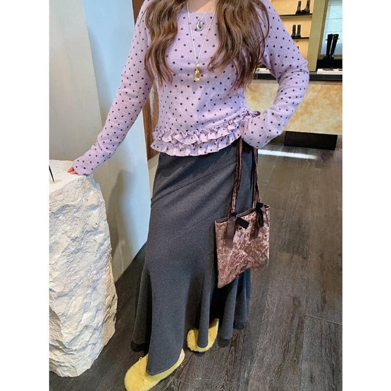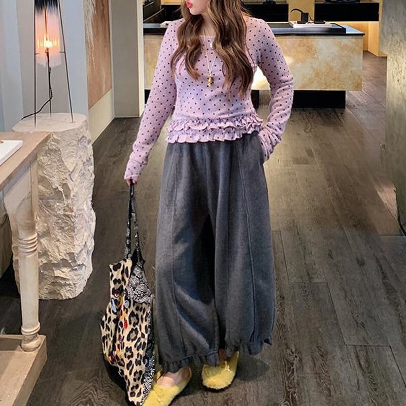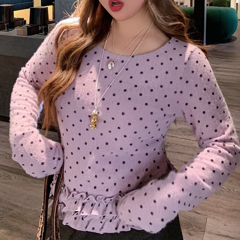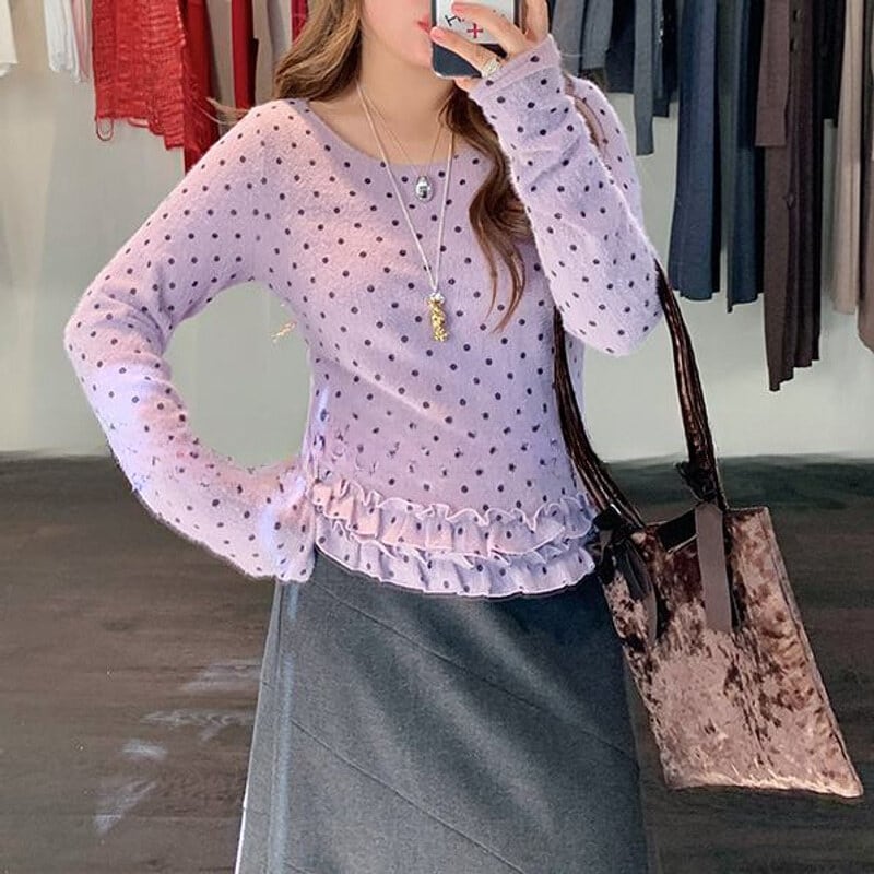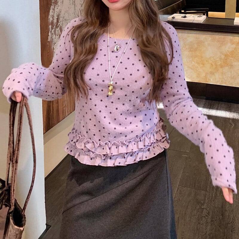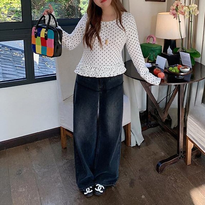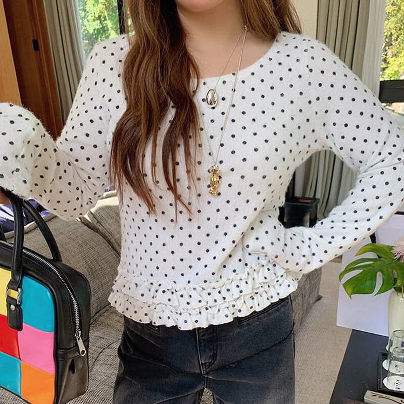 Dot frill hem t-shirt B3873
