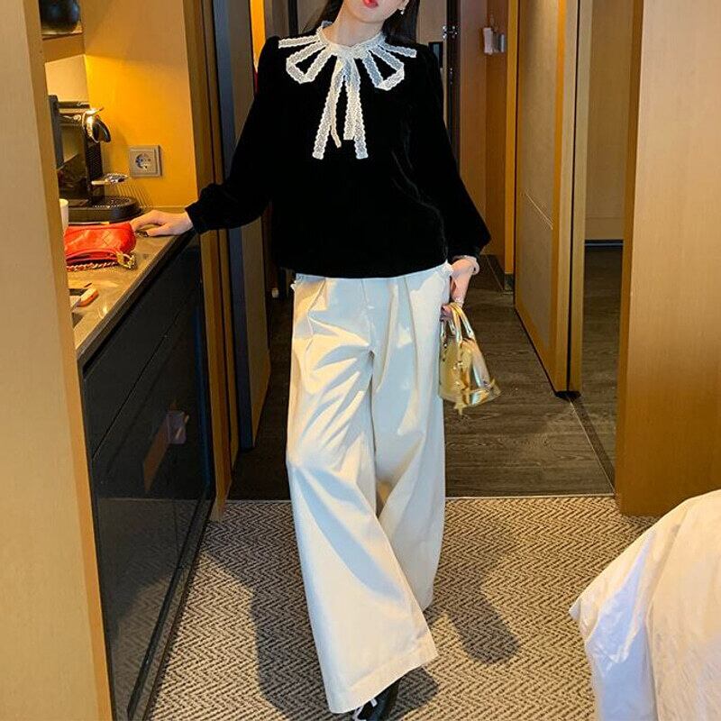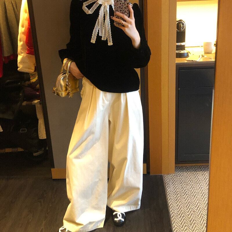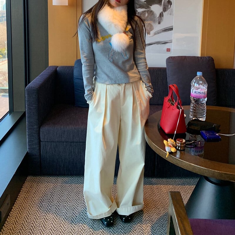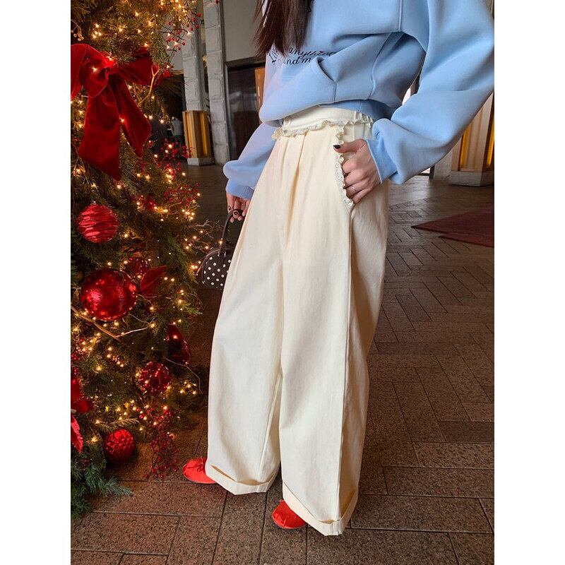 Frill accent wide pants B3879