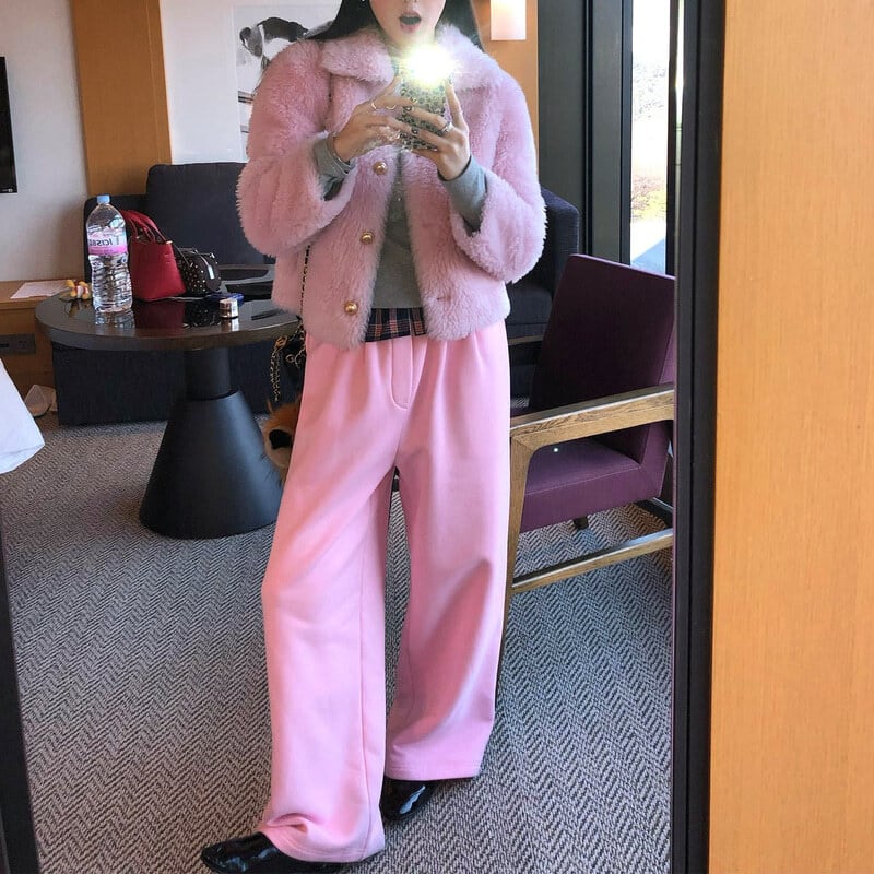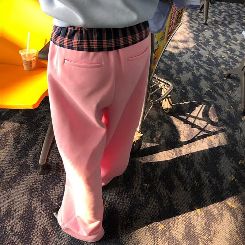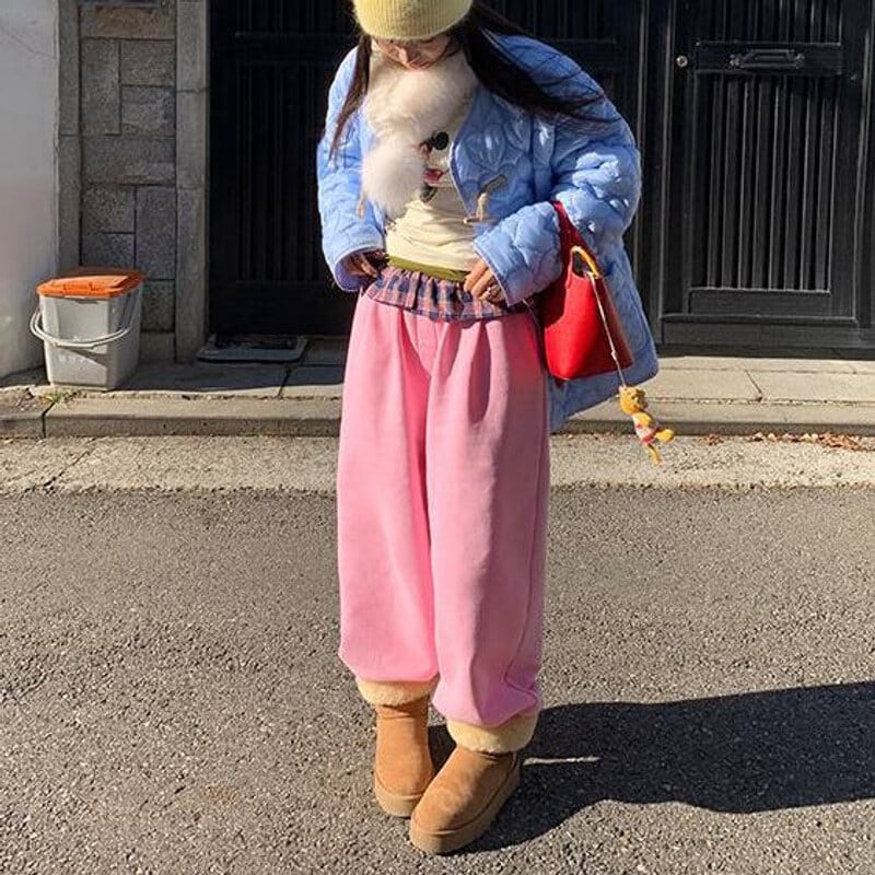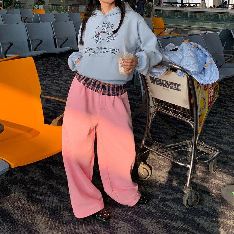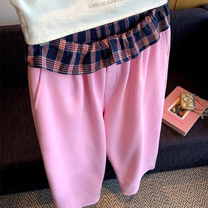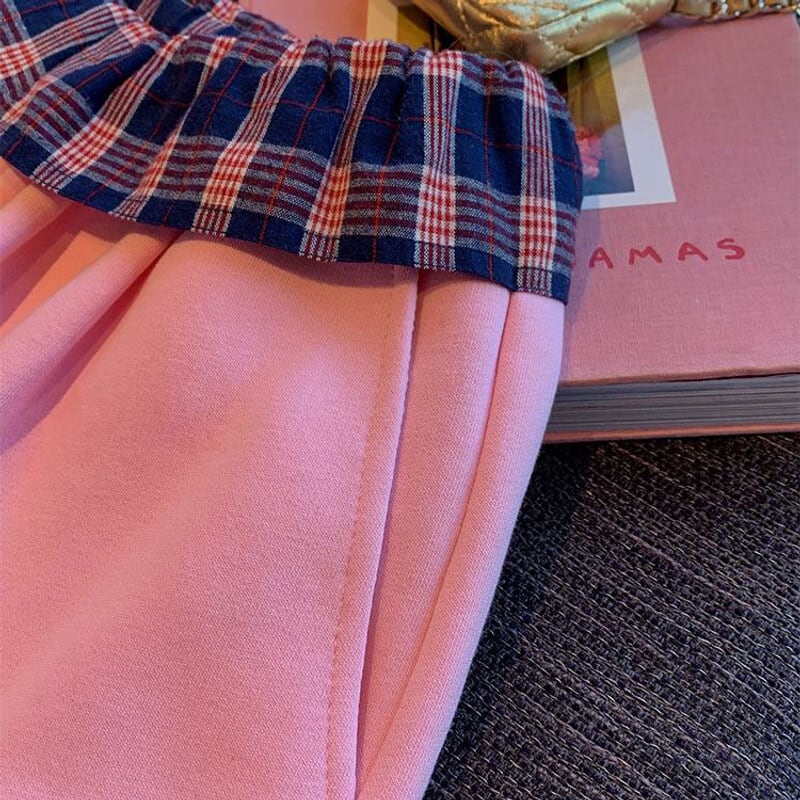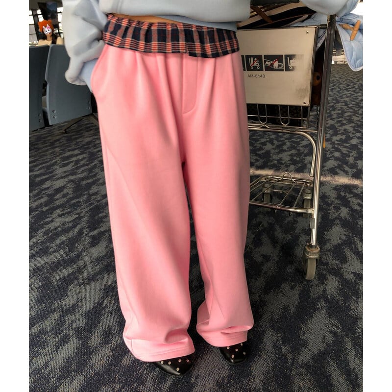 Check frill waist sweat pants B3880