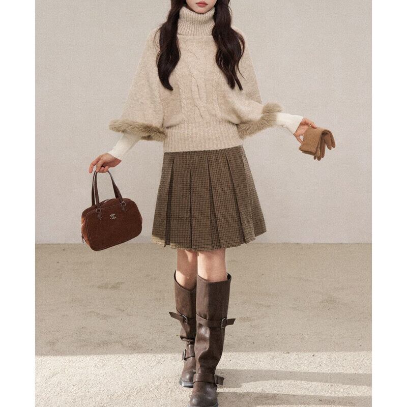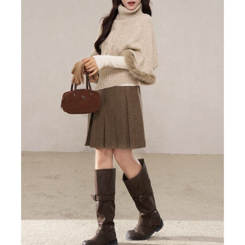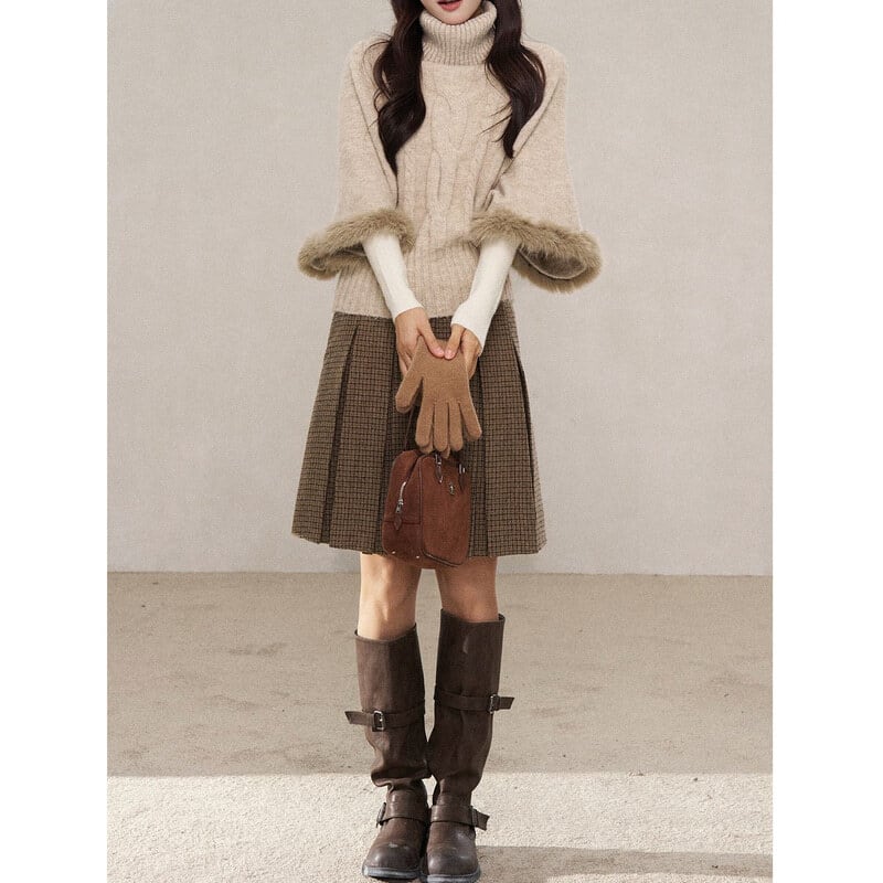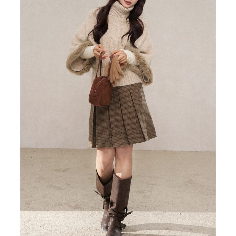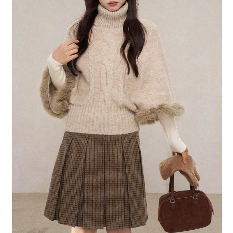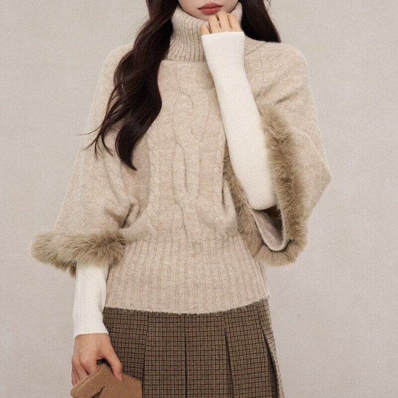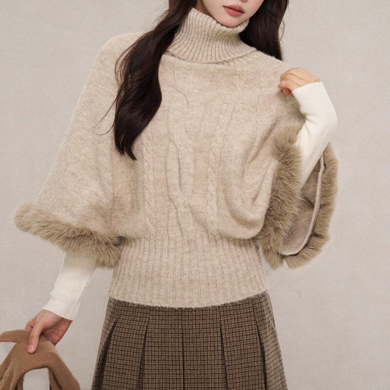 Turtle neck poncho knit B3888