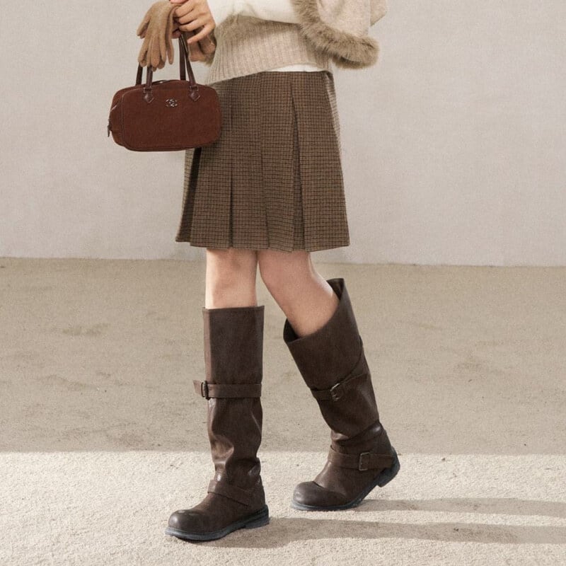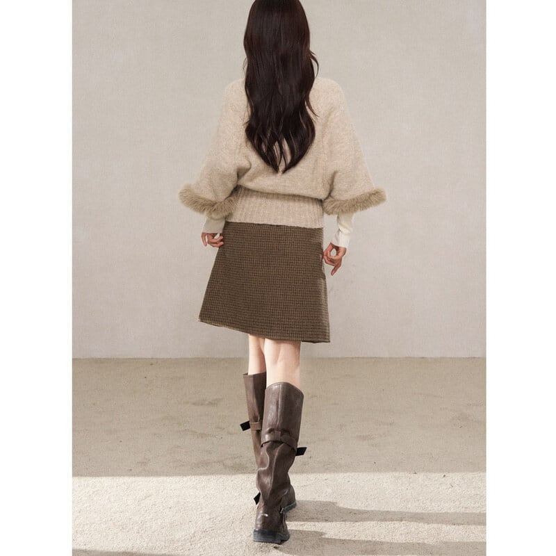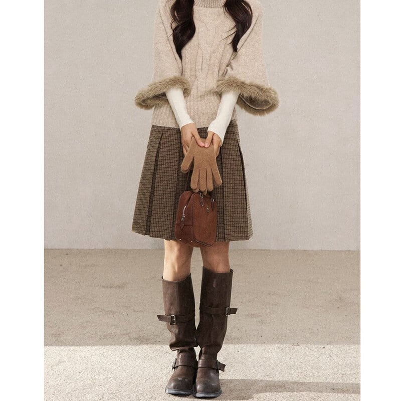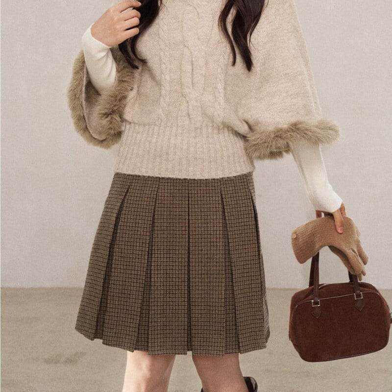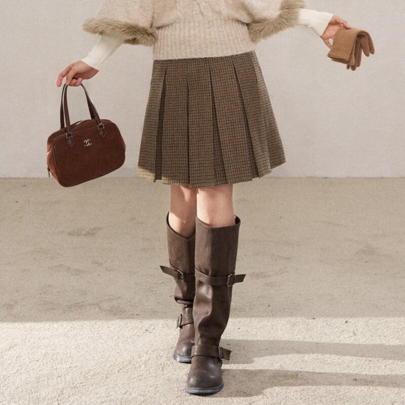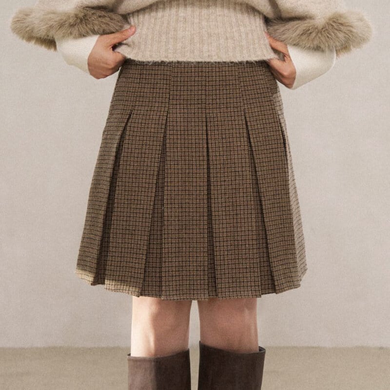 Check pleats skirt B3889