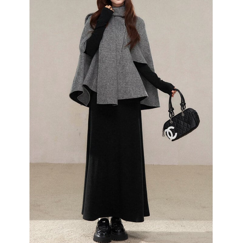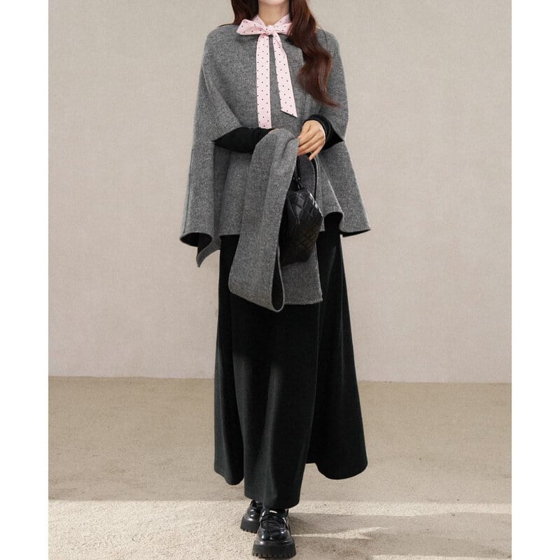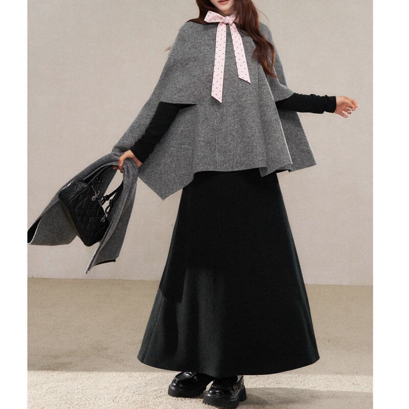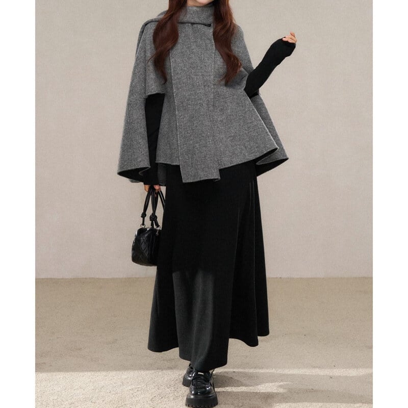 Gray cape coat B3892