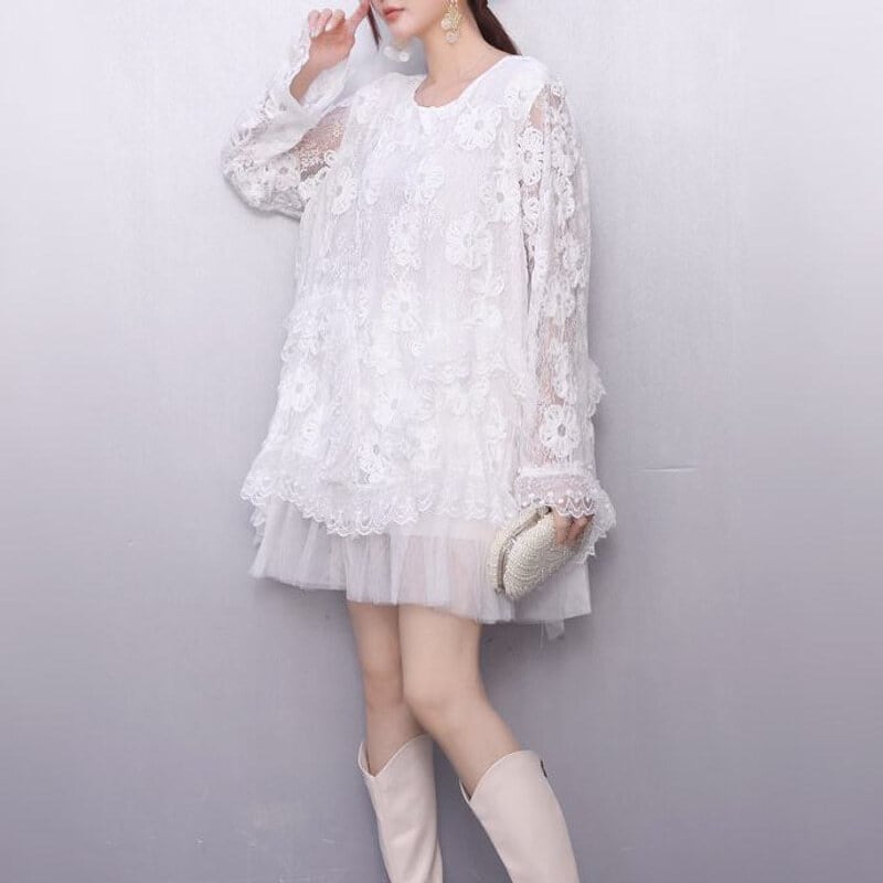 Flower lace mini dress B3908