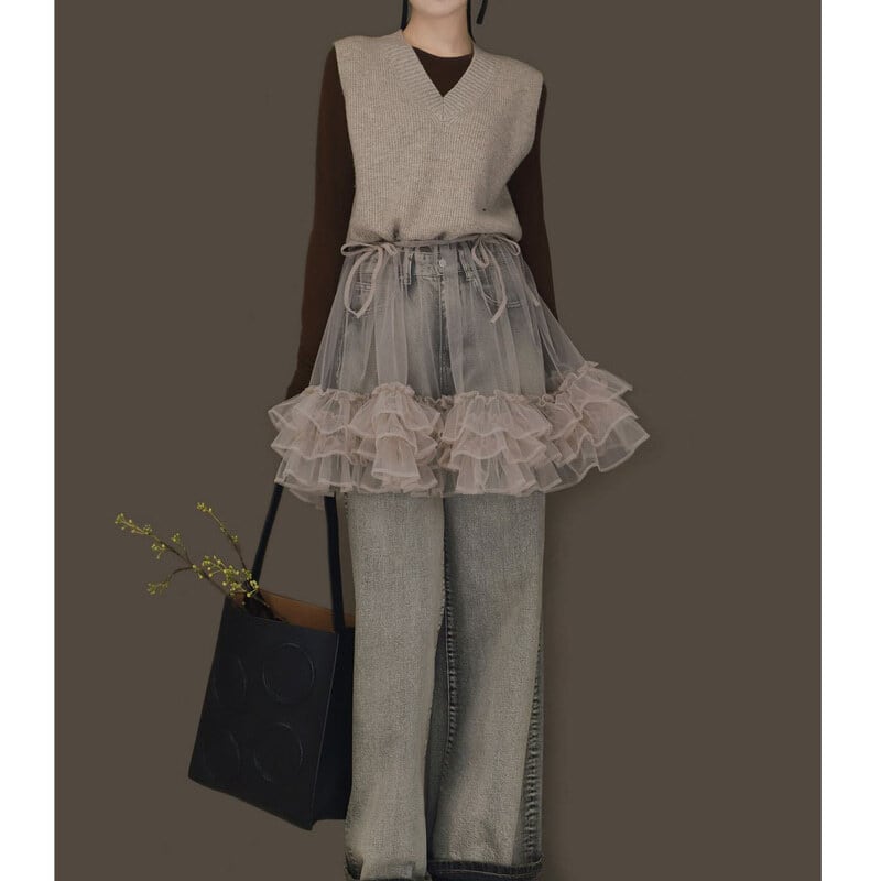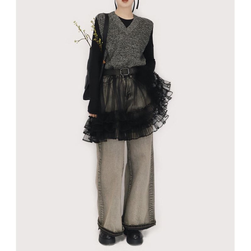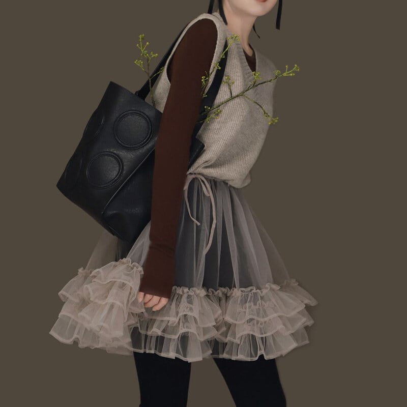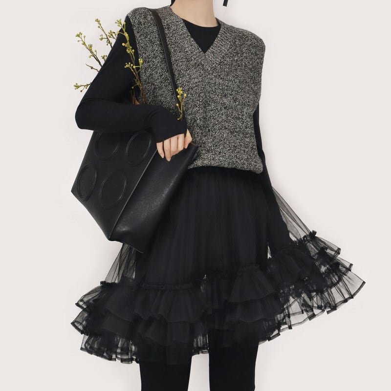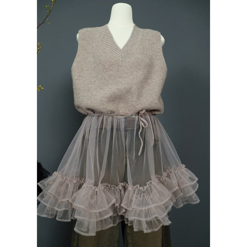 Knit tulle combi mini dress B3909