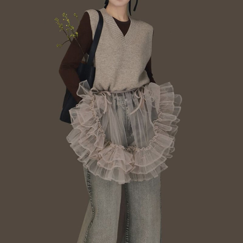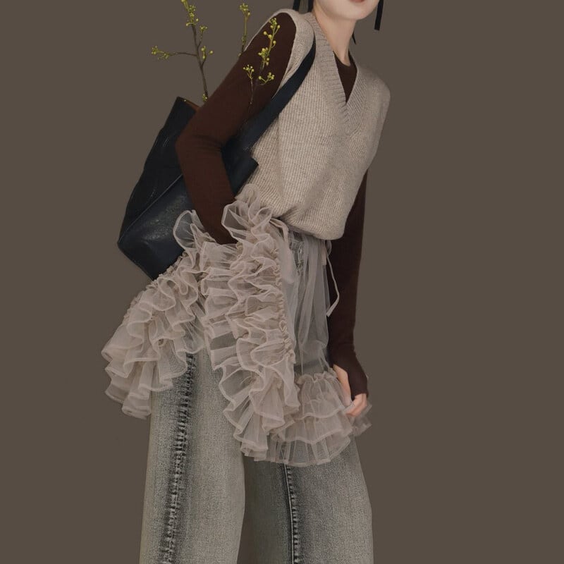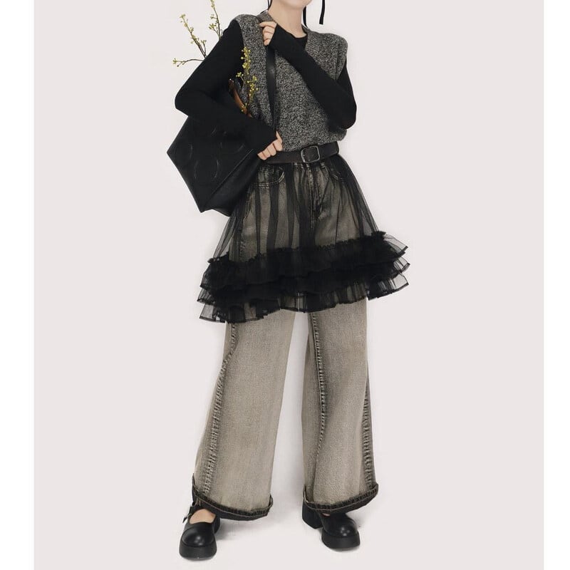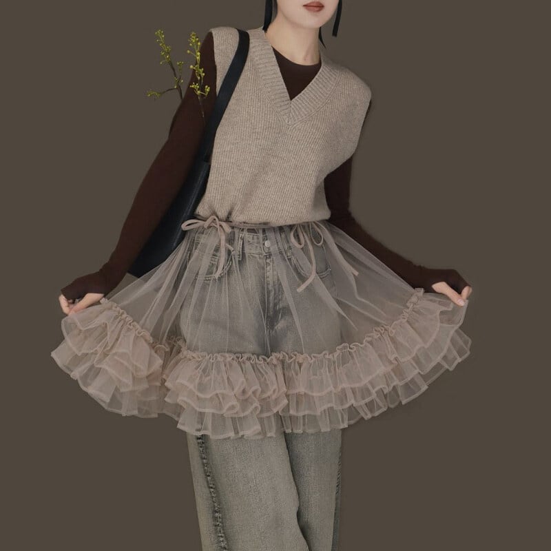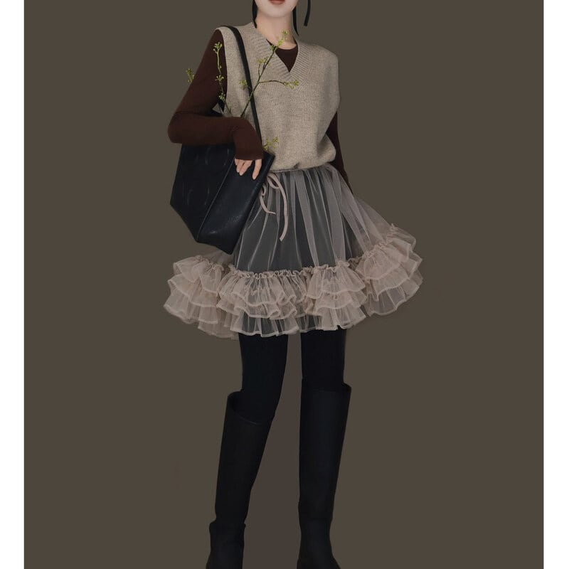 Knit tulle combi mini dress B3909