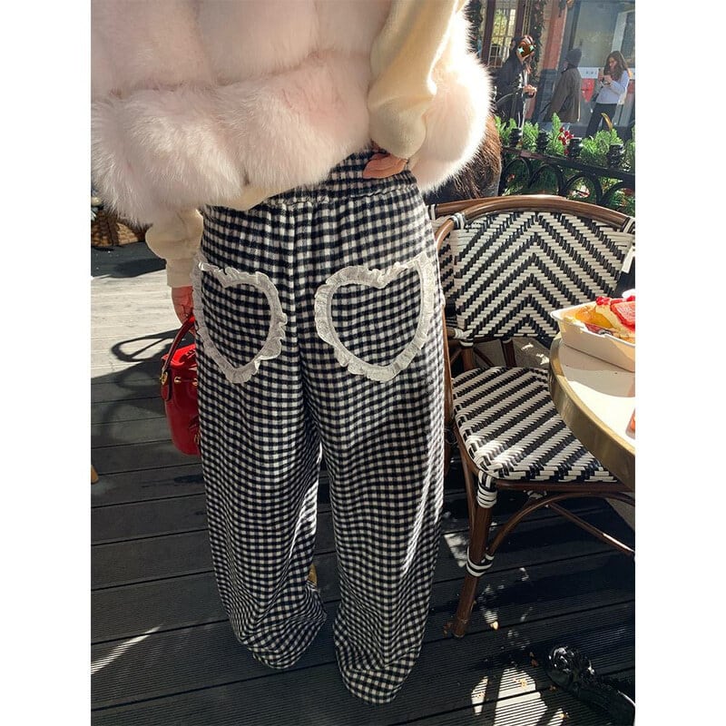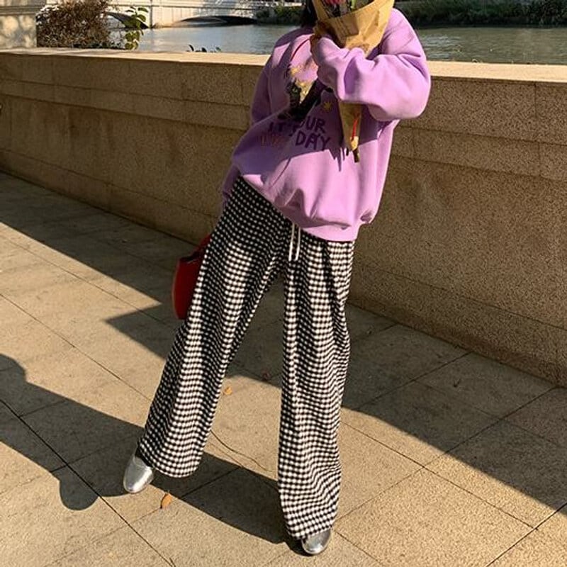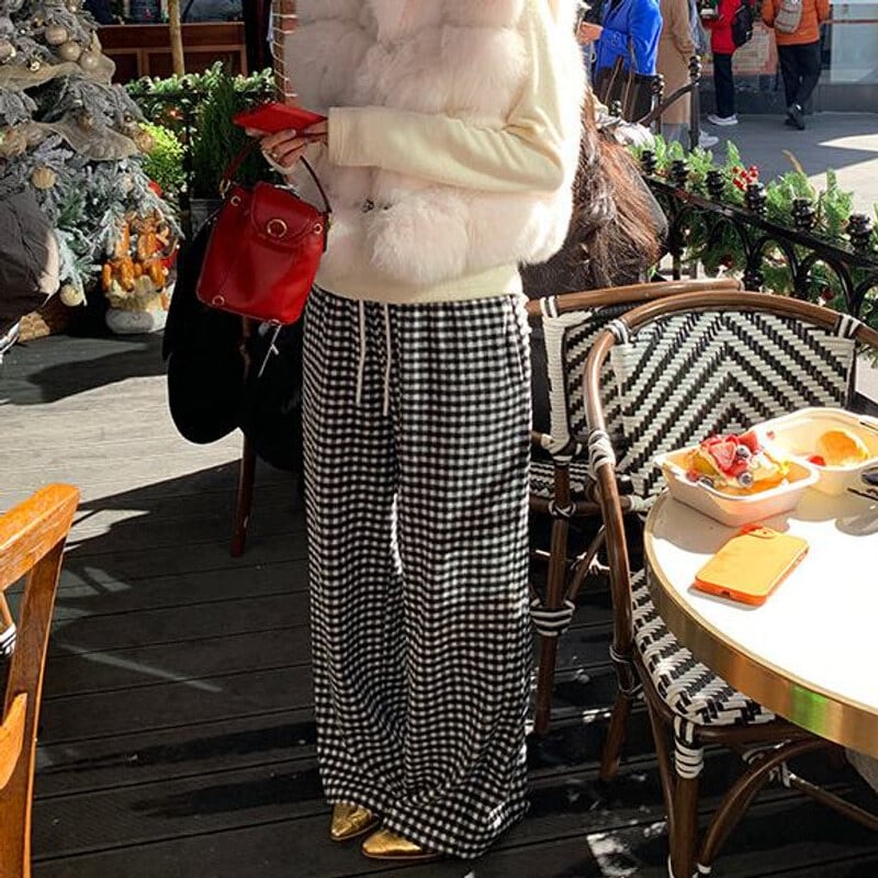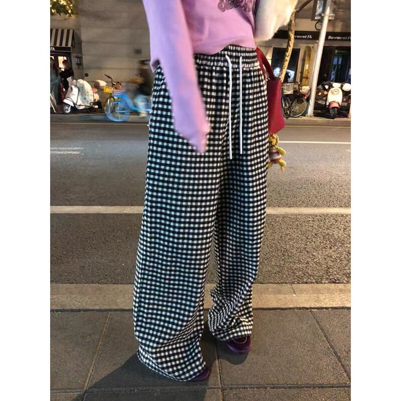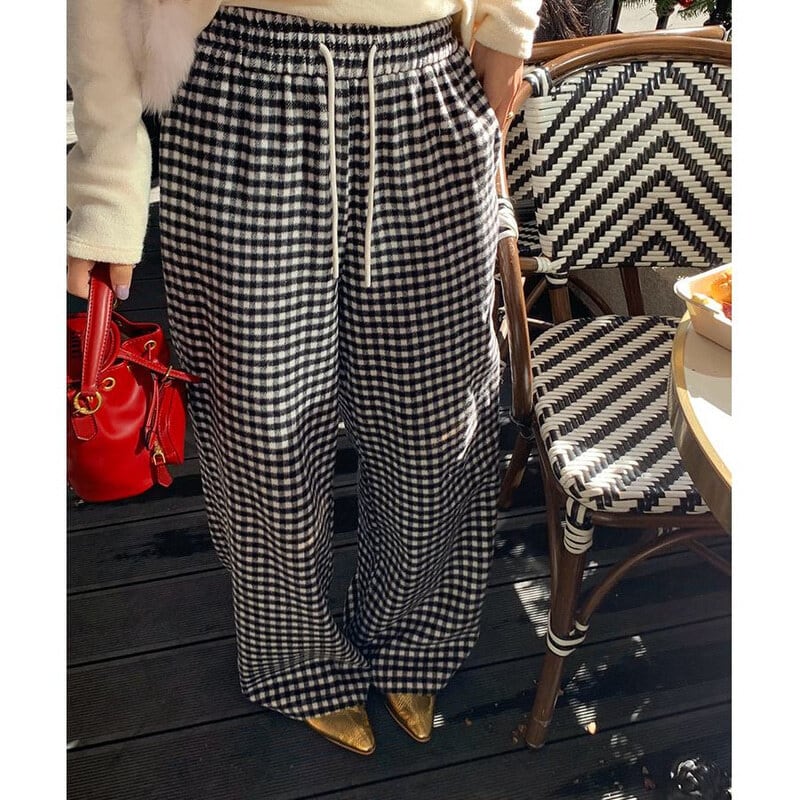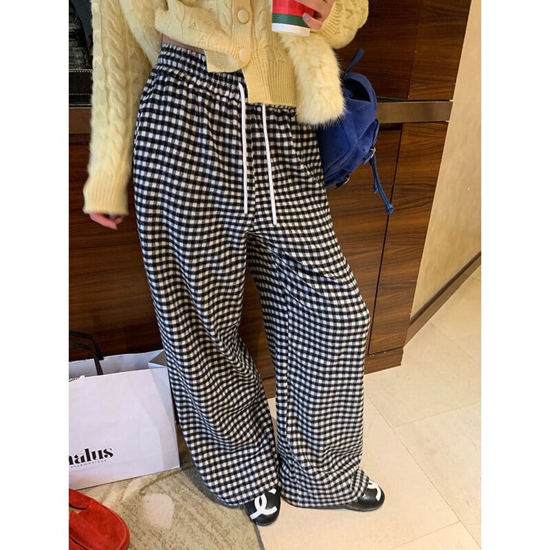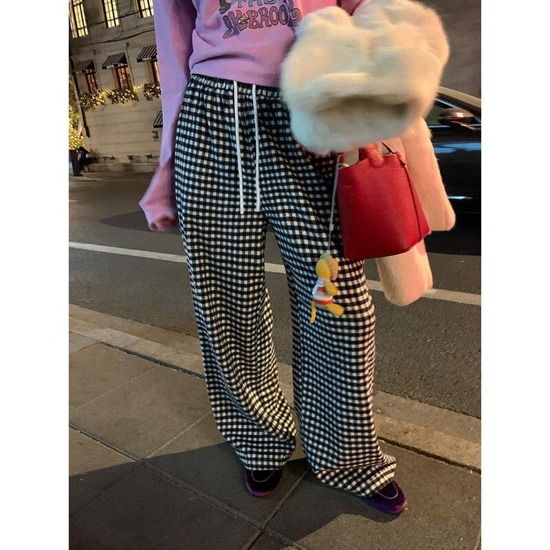 Gingham check easy pants B3912