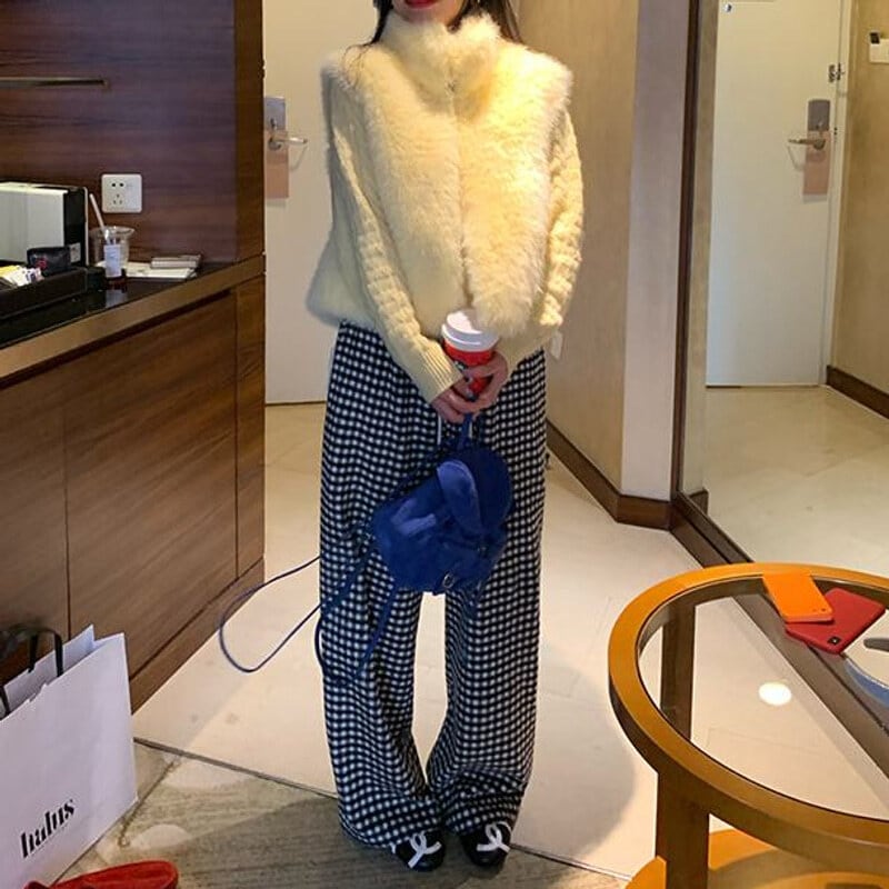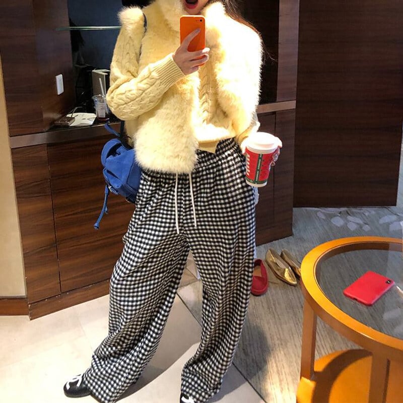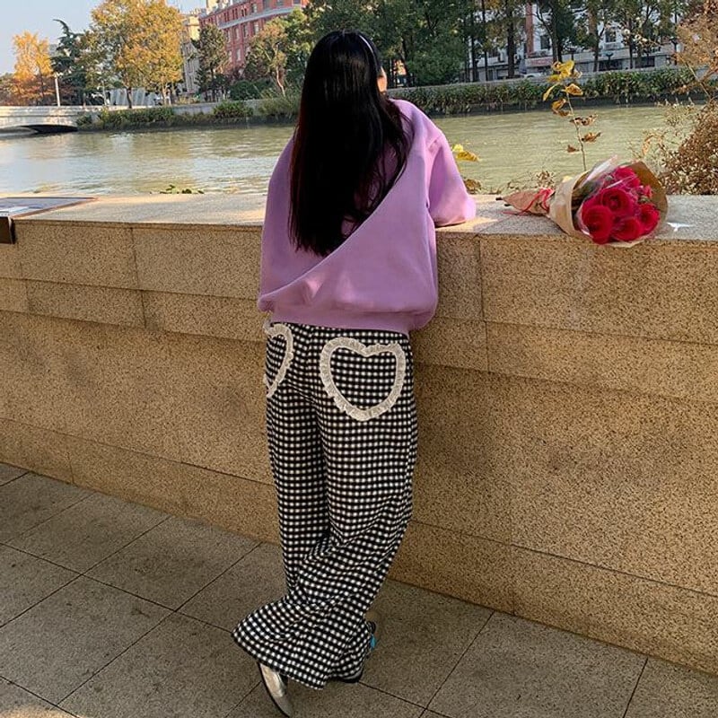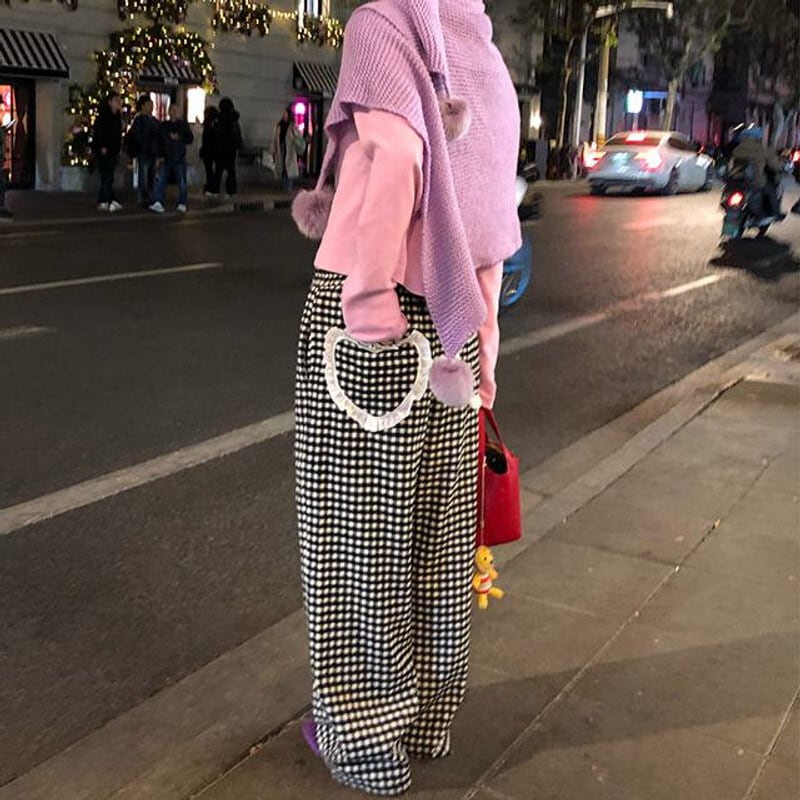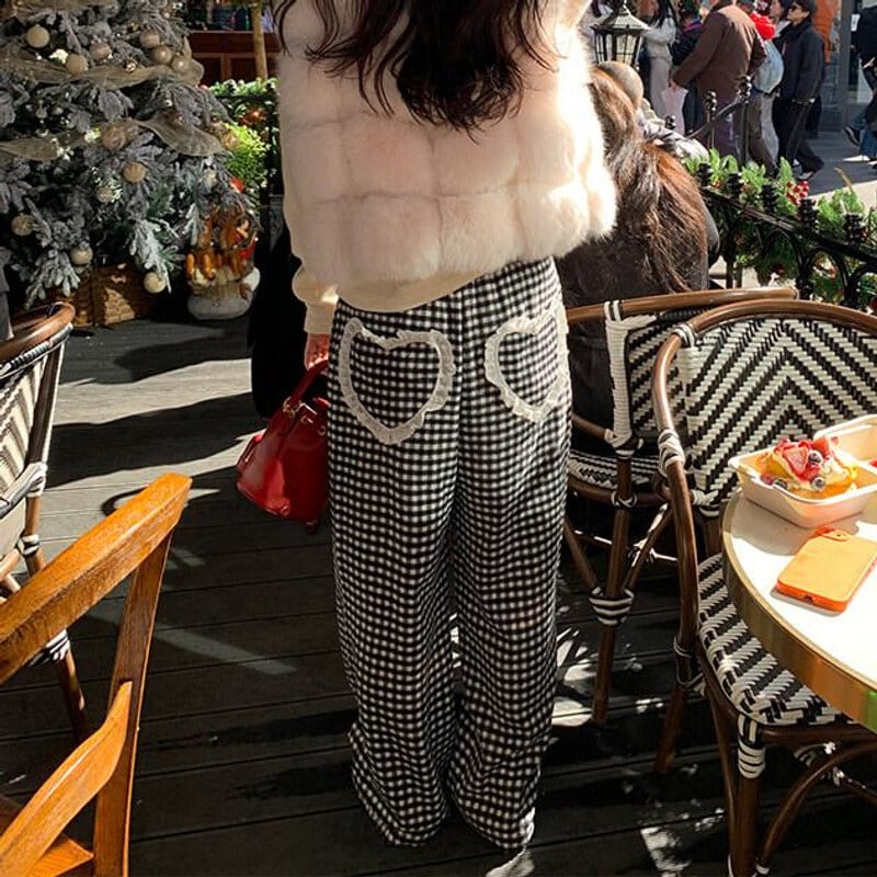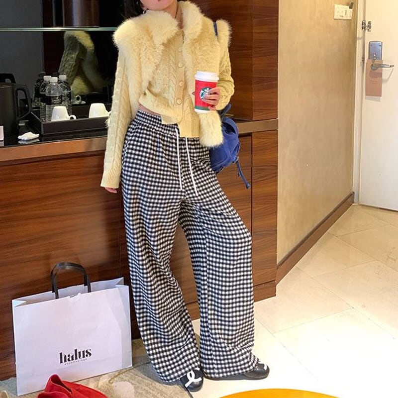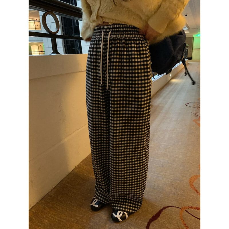 Gingham check easy pants B3912