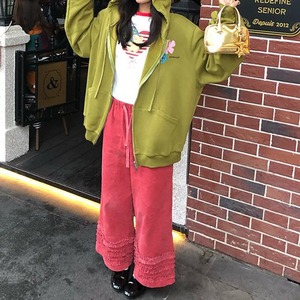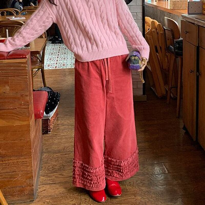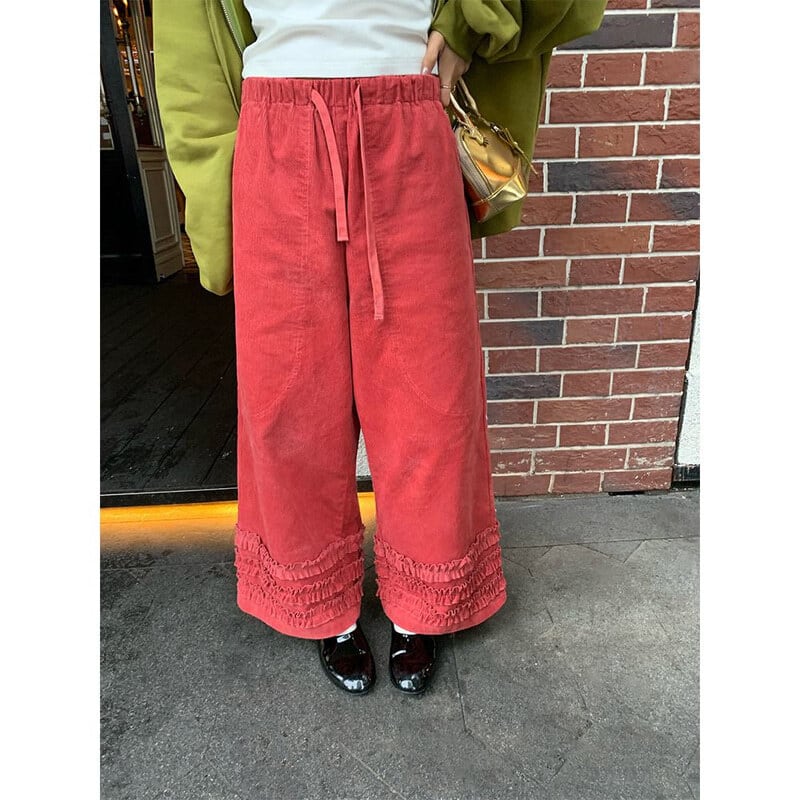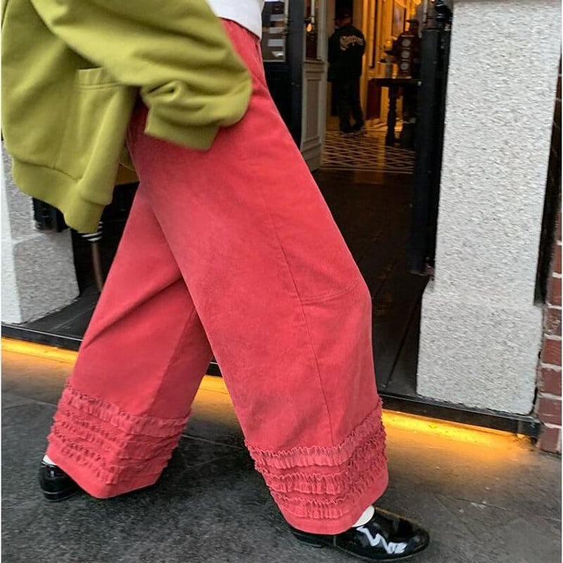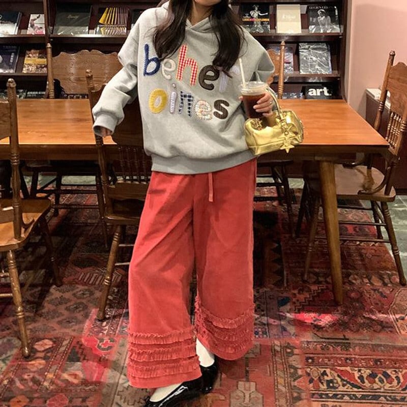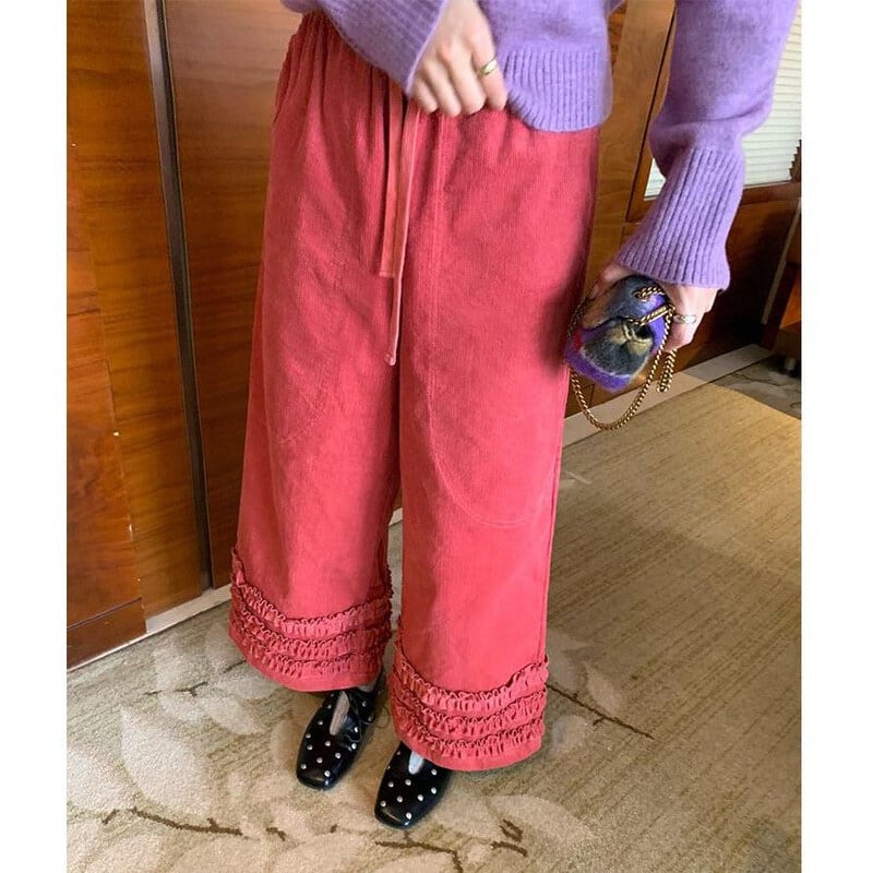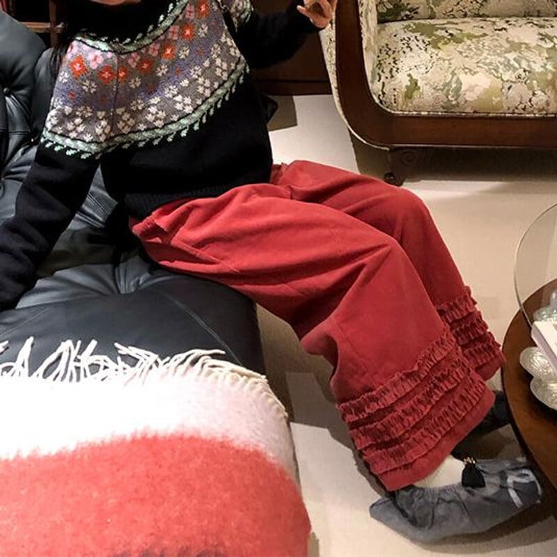Frill hem wide pants B3918