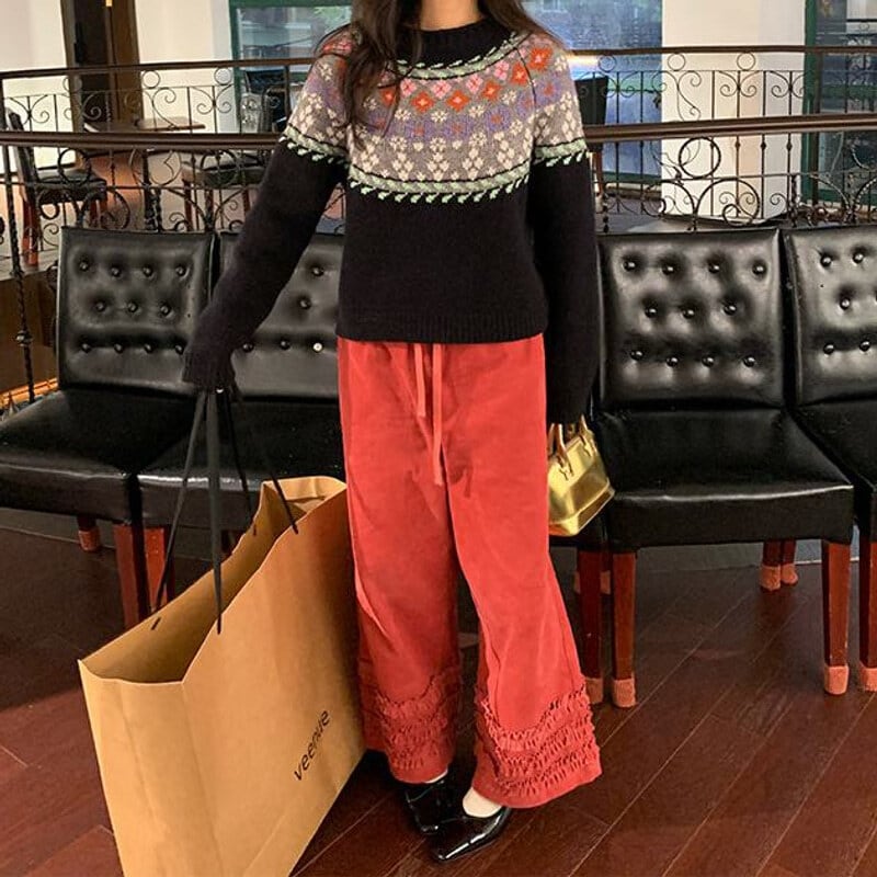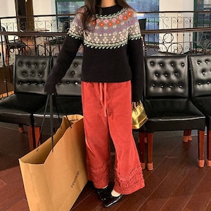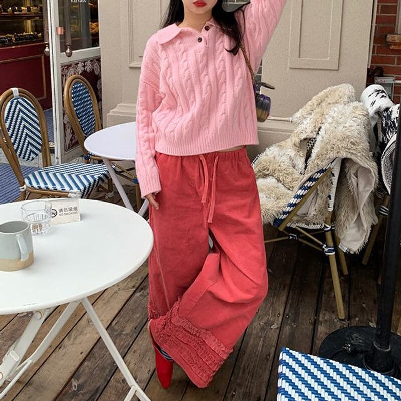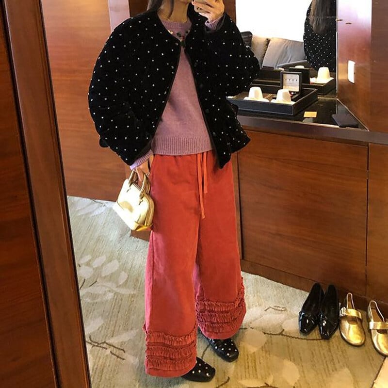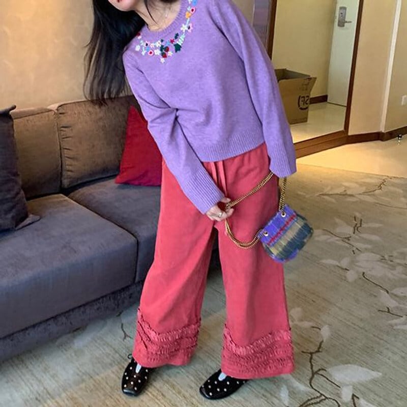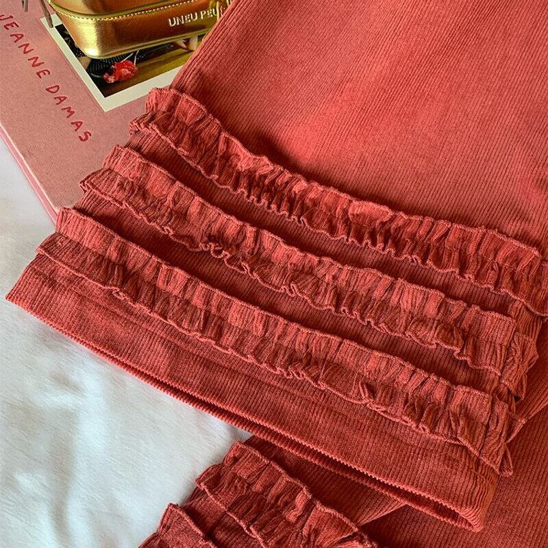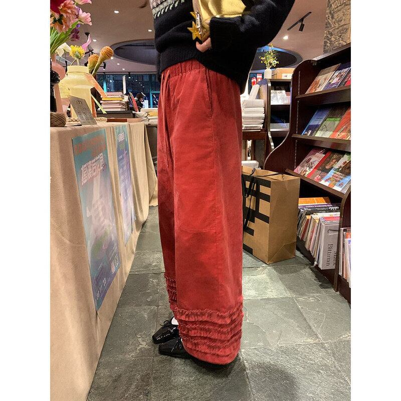 Frill hem wide pants B3918