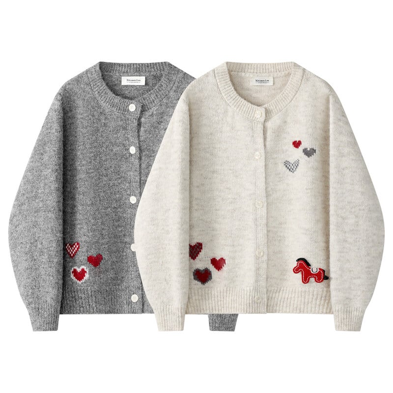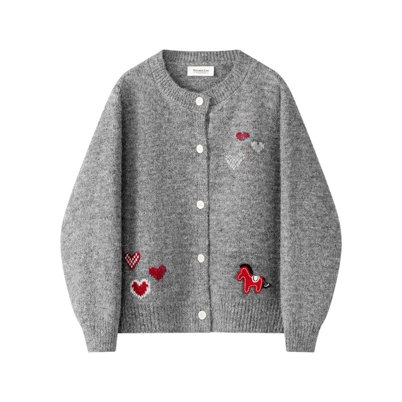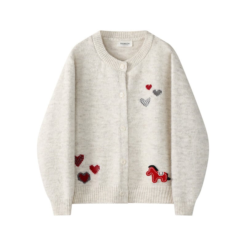 Pony heart embroidery cardigan B3951