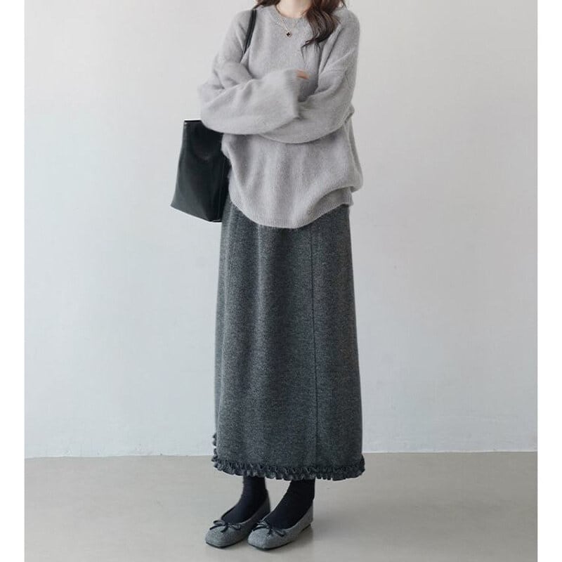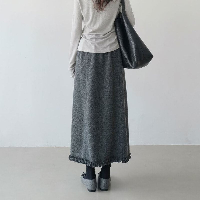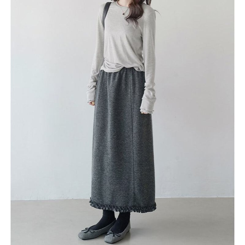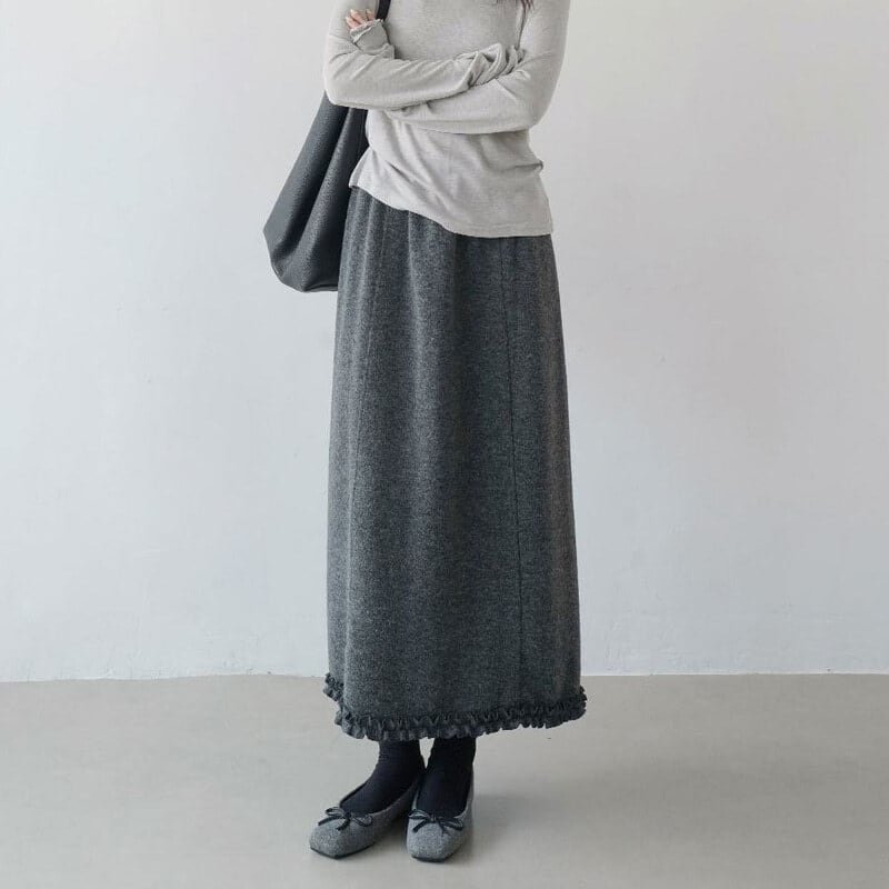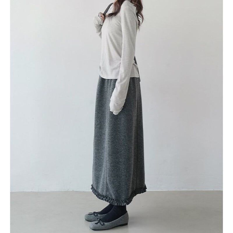 Frill hem pintuck long skirt B3958