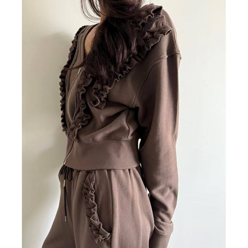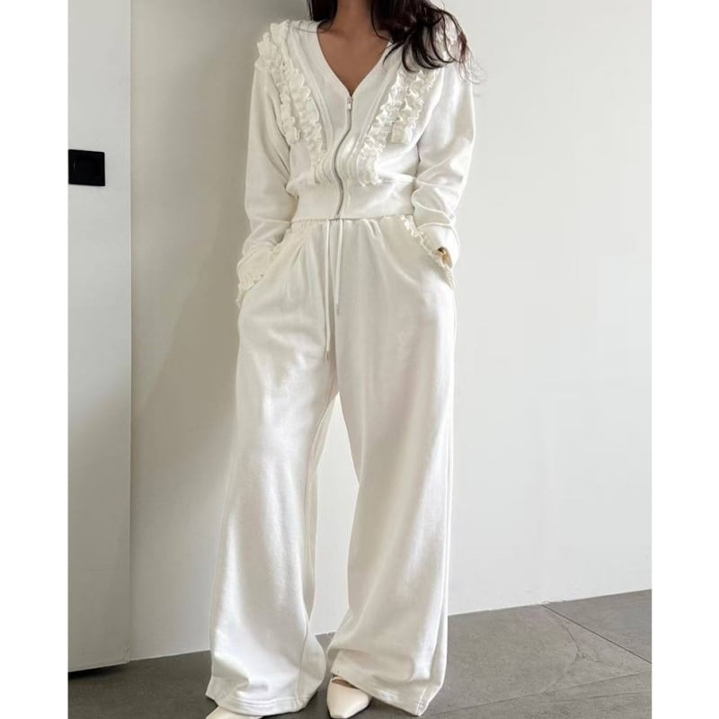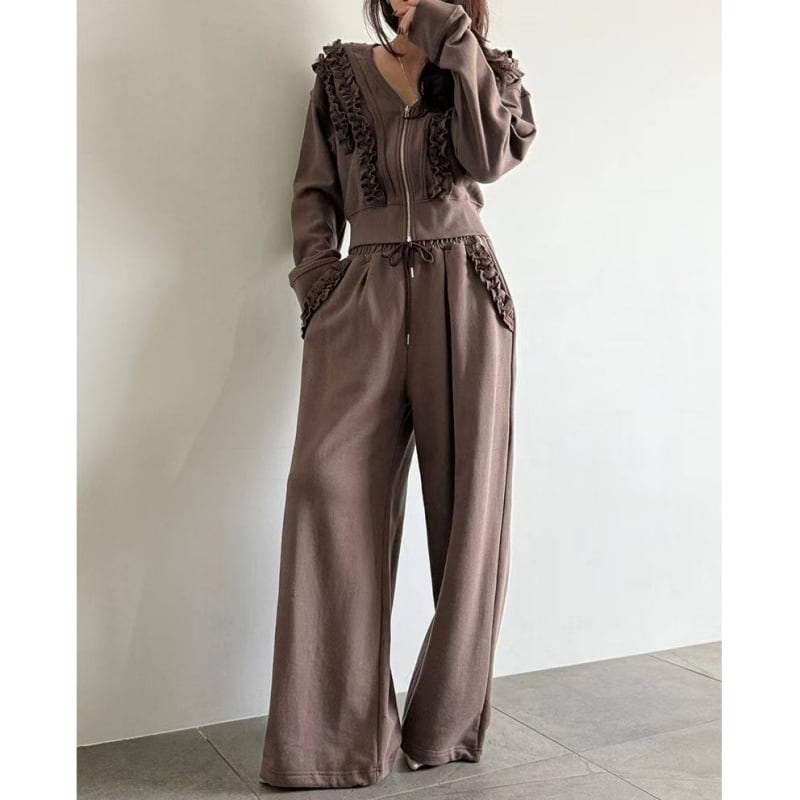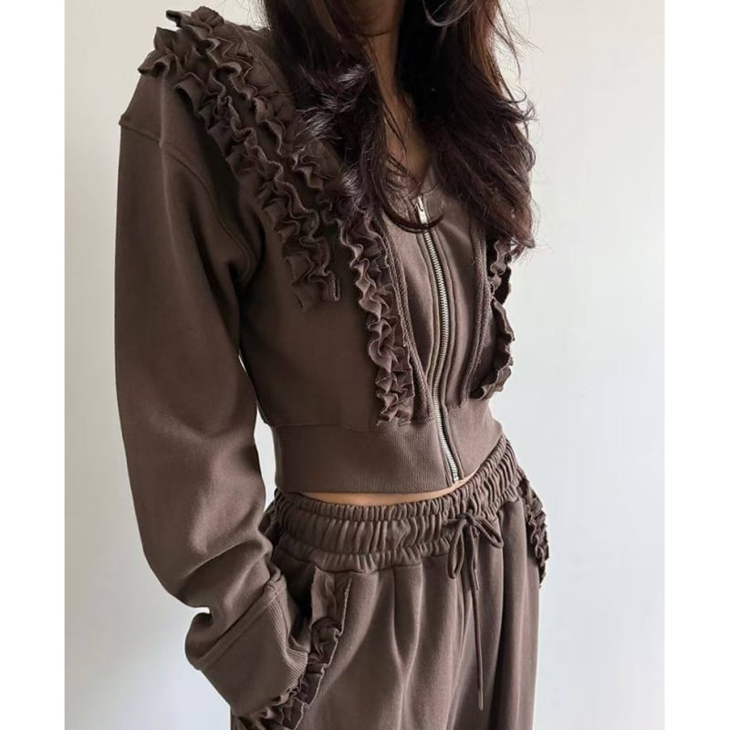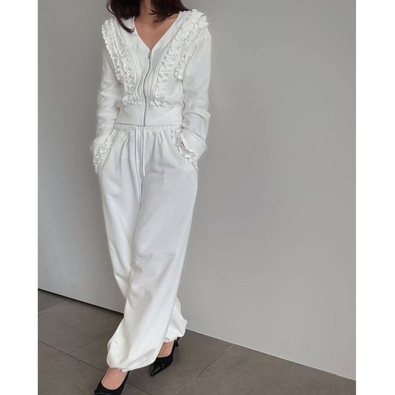 SET◆Frill detail zip hoodie setup B4050