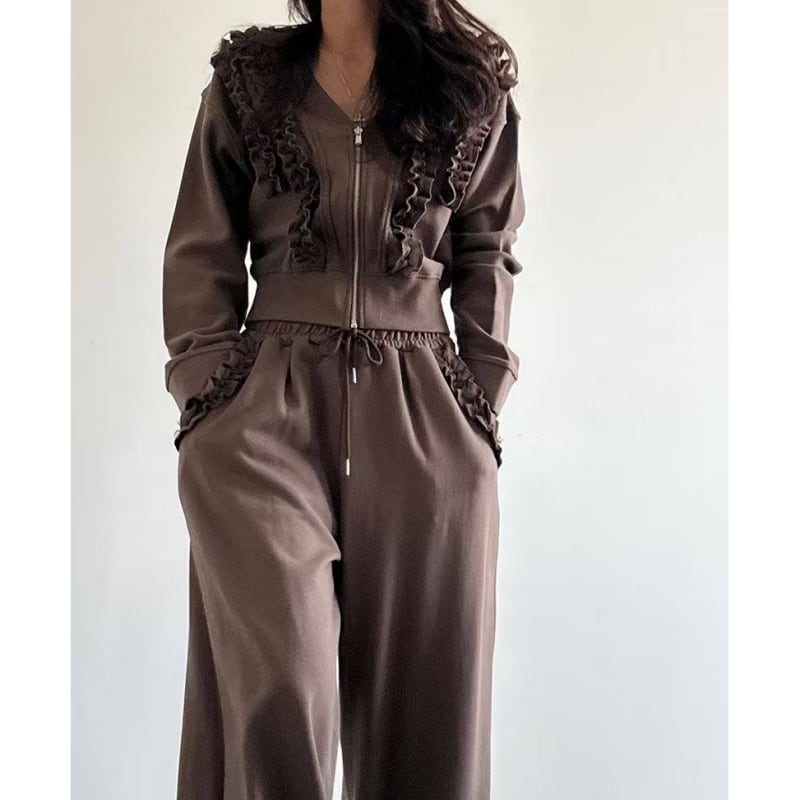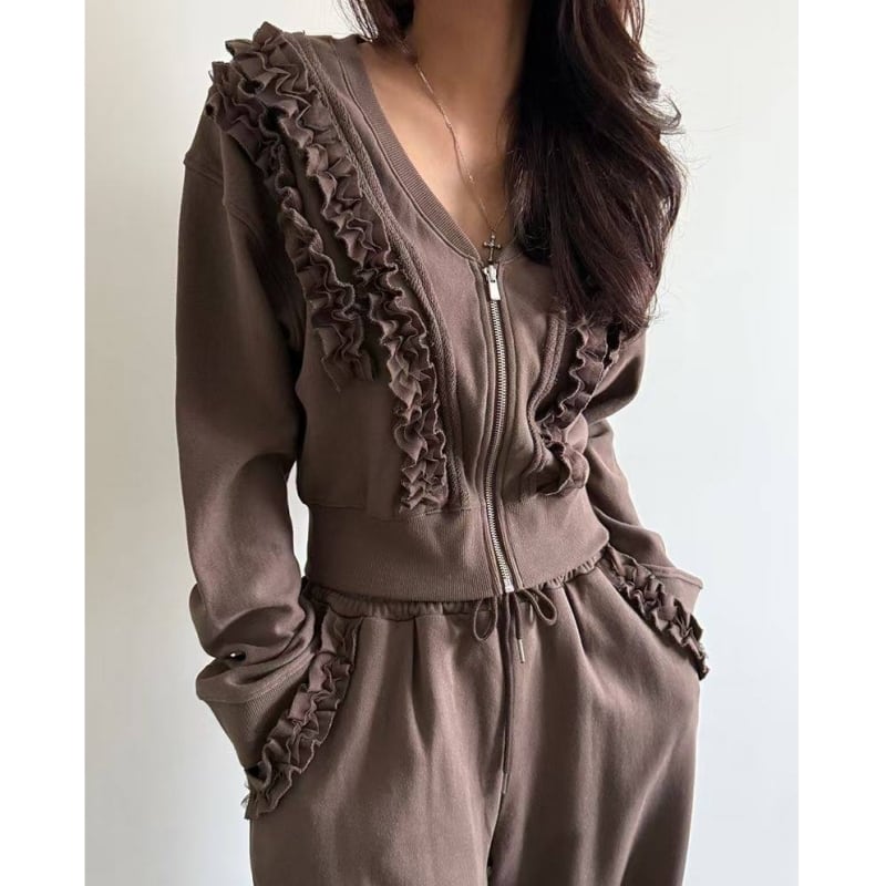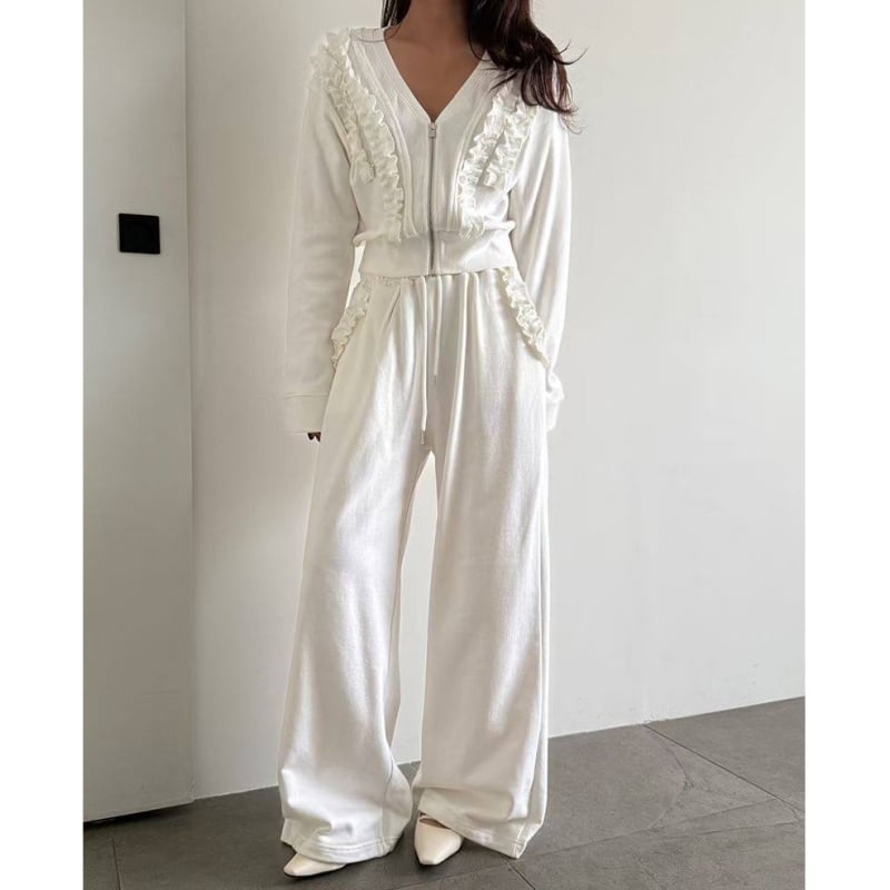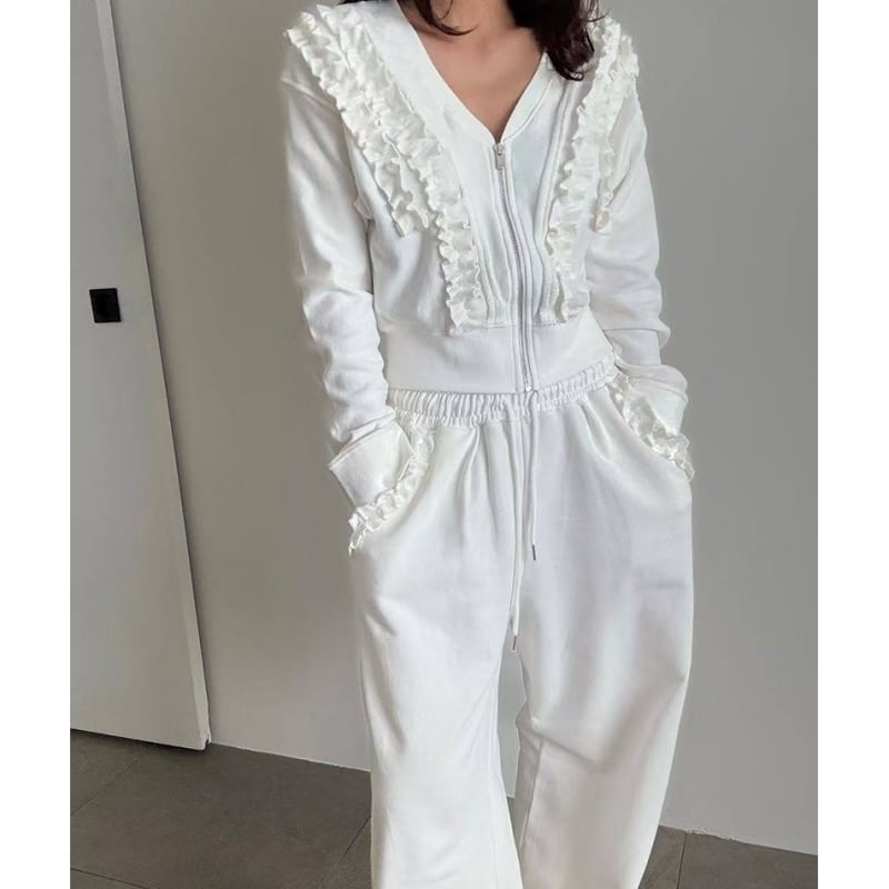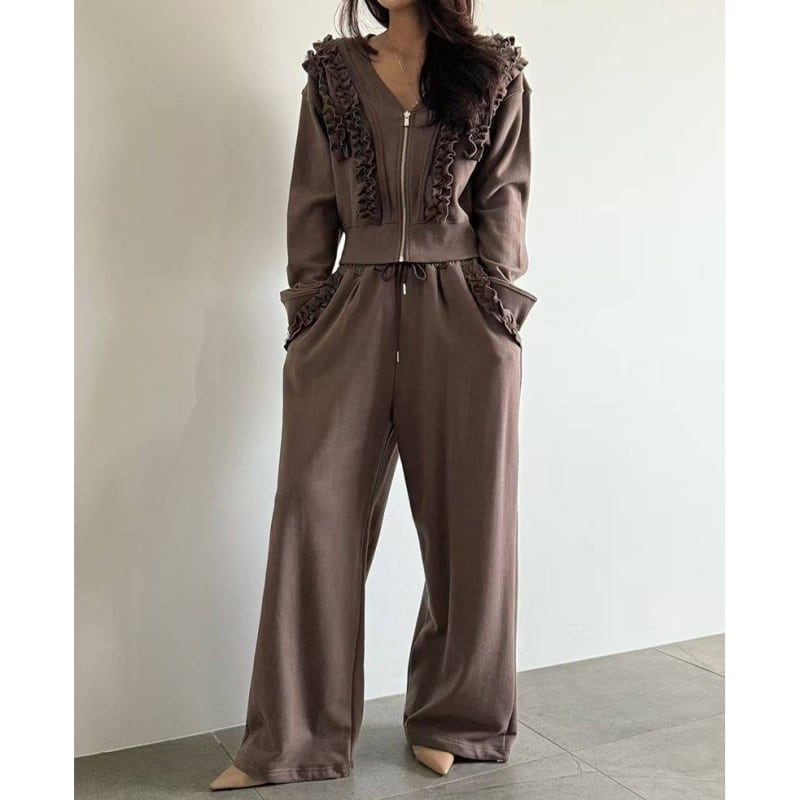 SET◆Frill detail zip hoodie setup B4050