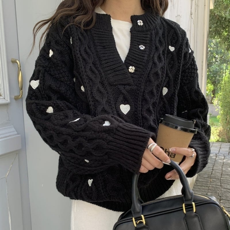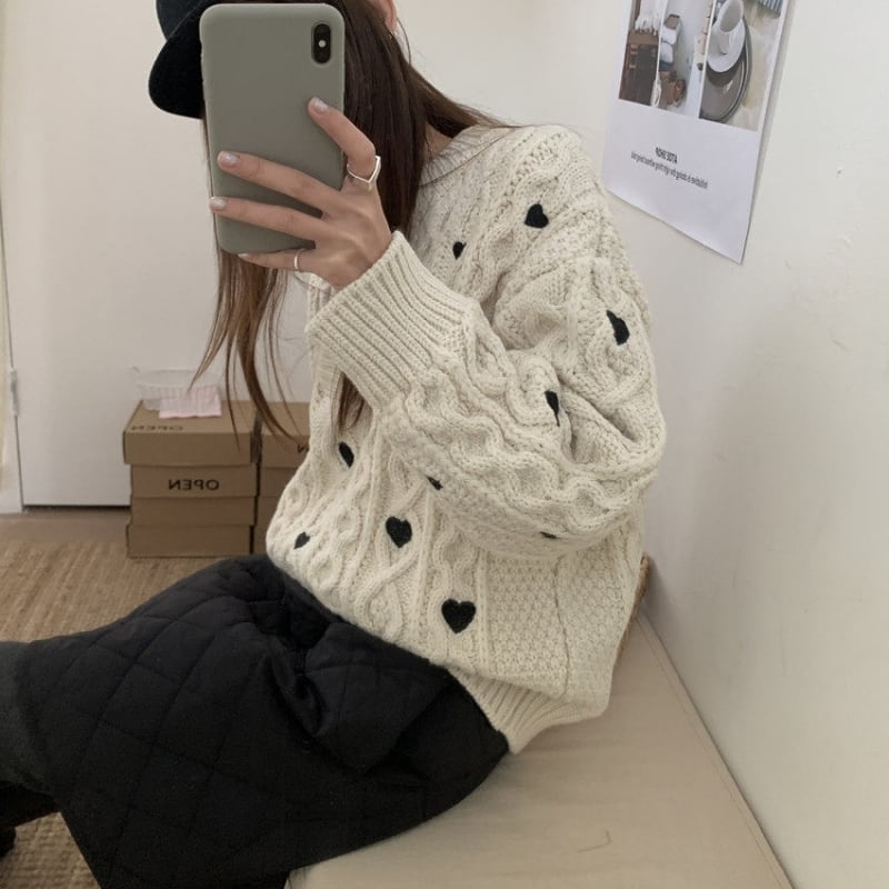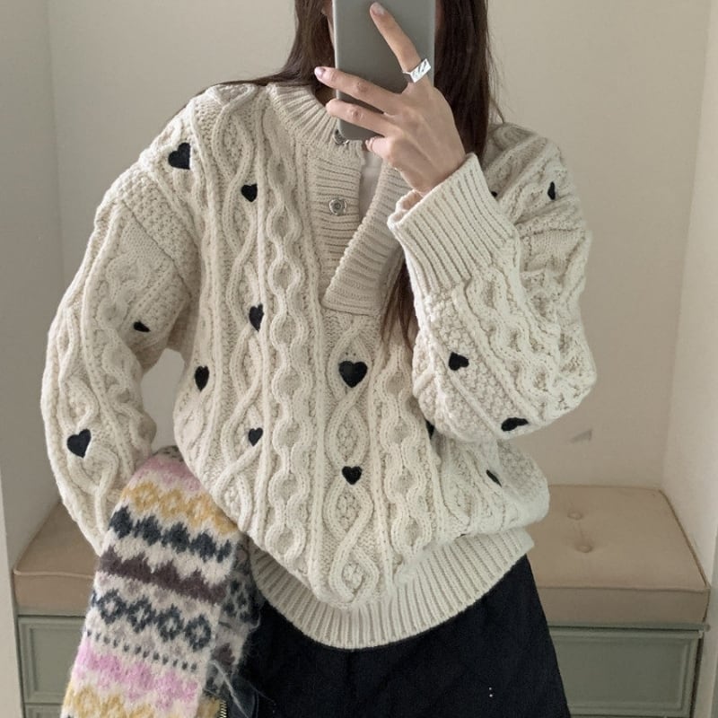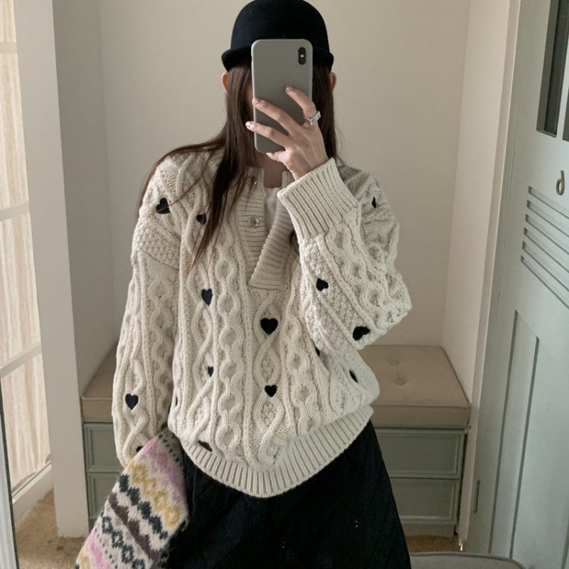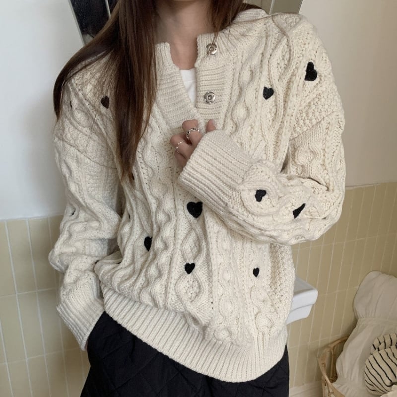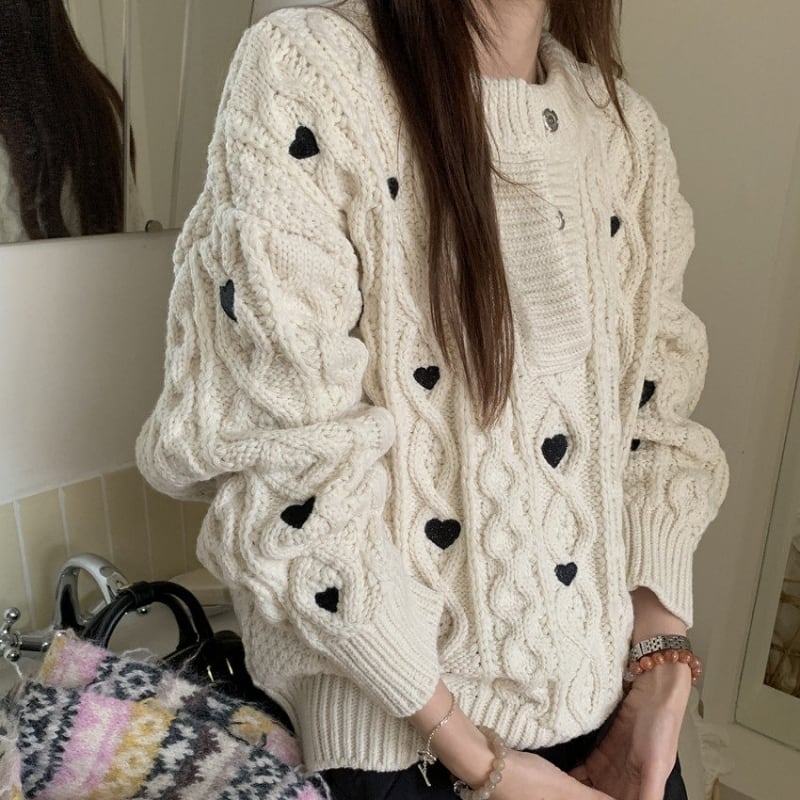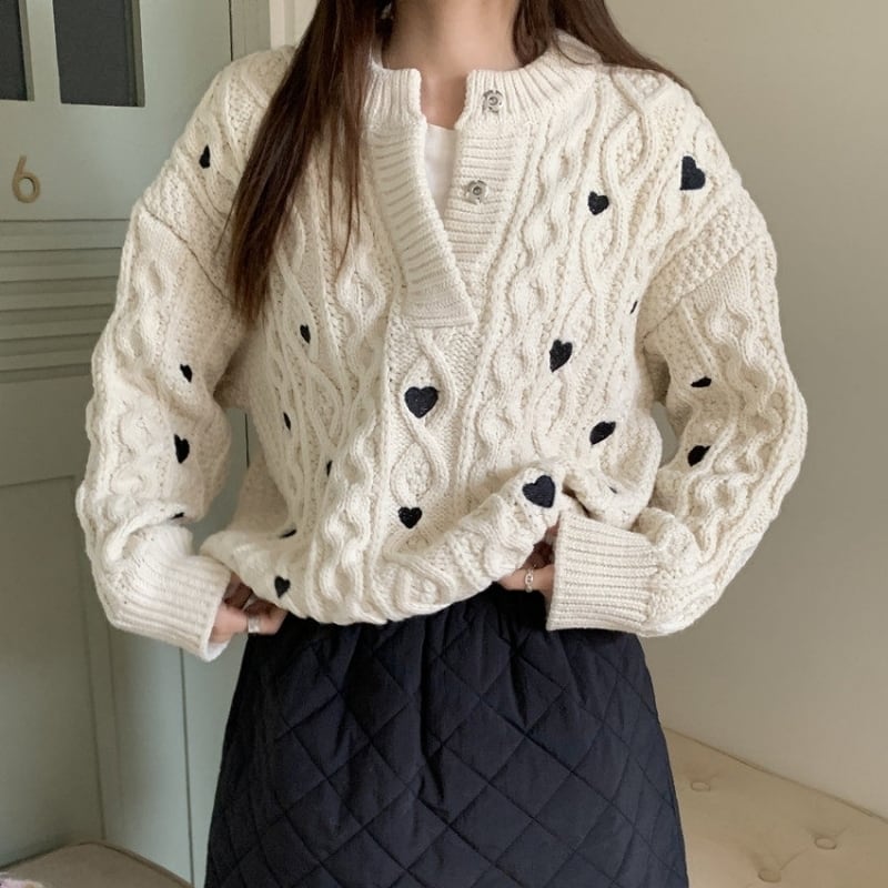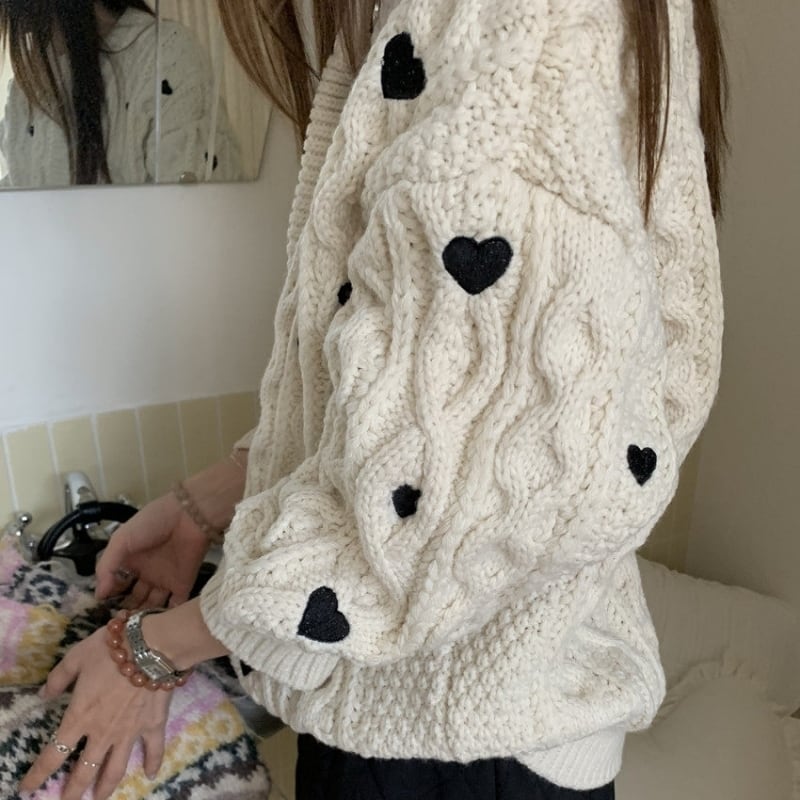 Heart embroidered cable knit B4084