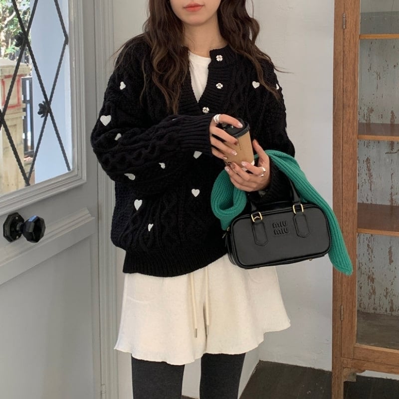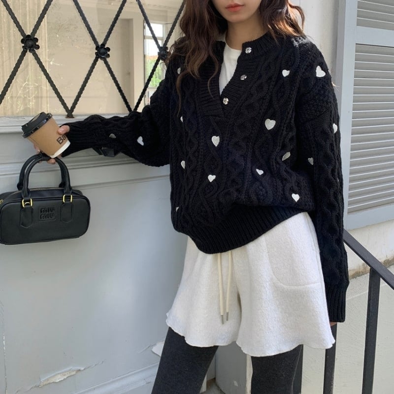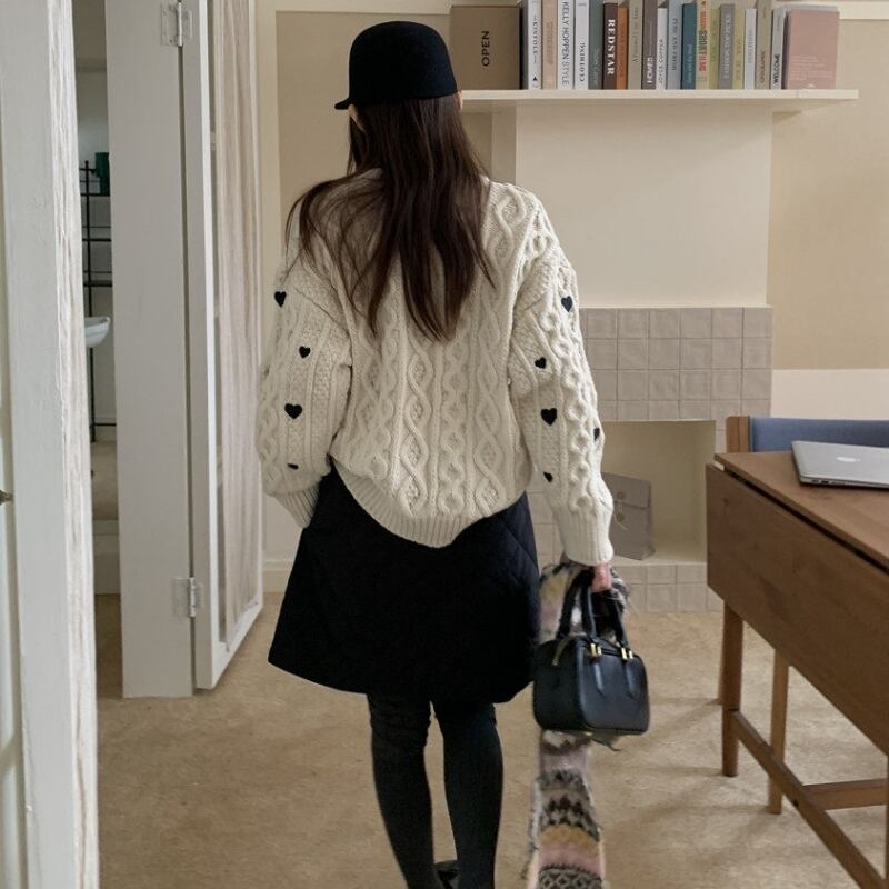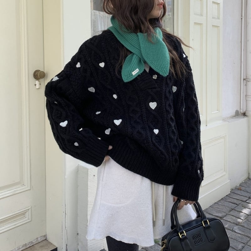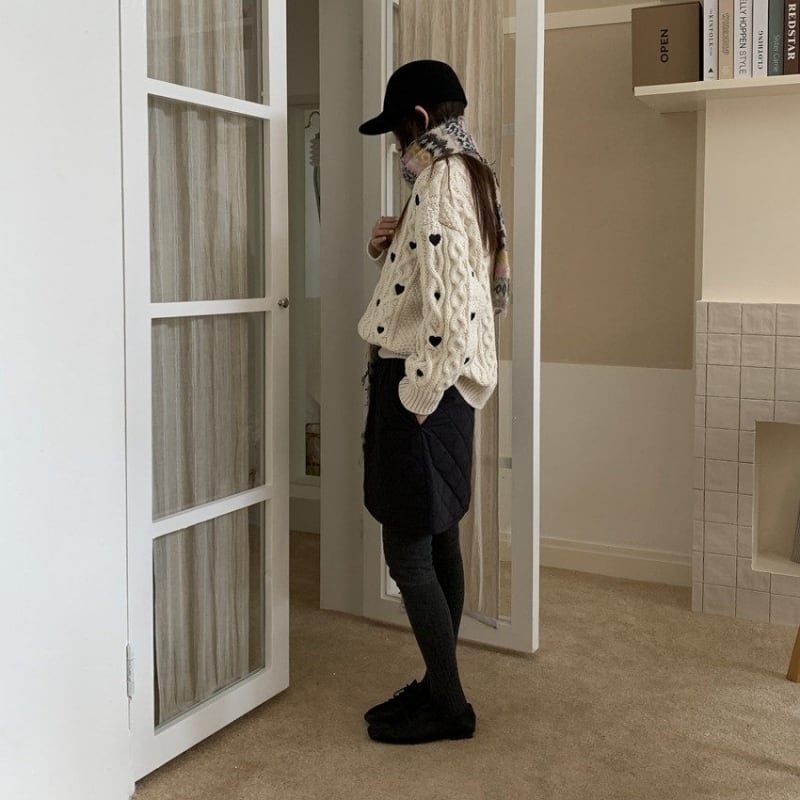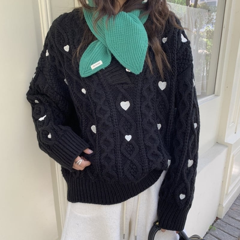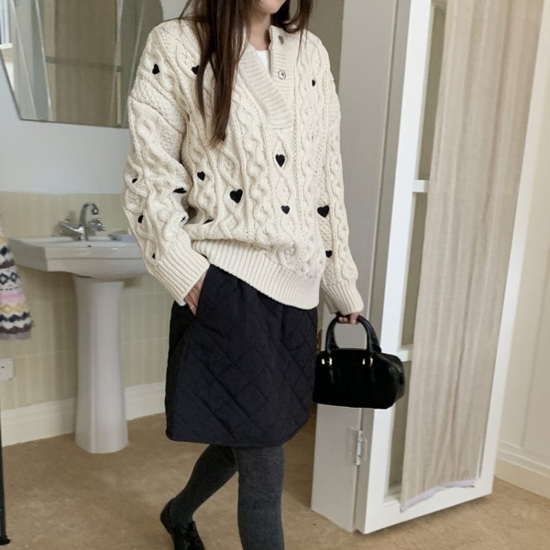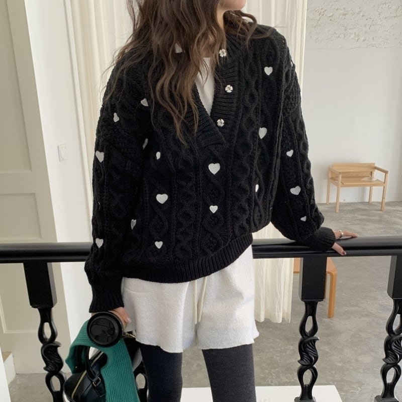 Heart embroidered cable knit B4084